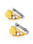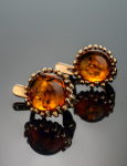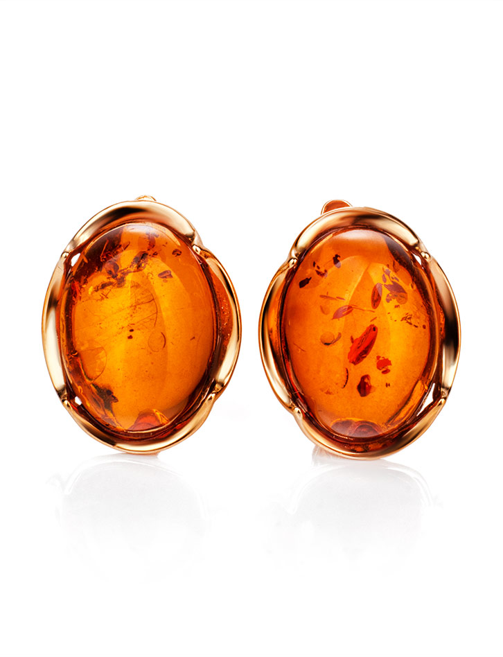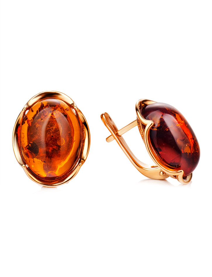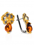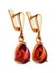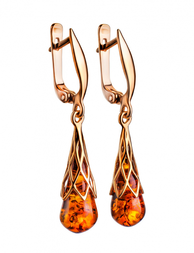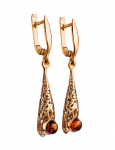 Позолоченные серьги с янтарём коньячного цвета «Лион»