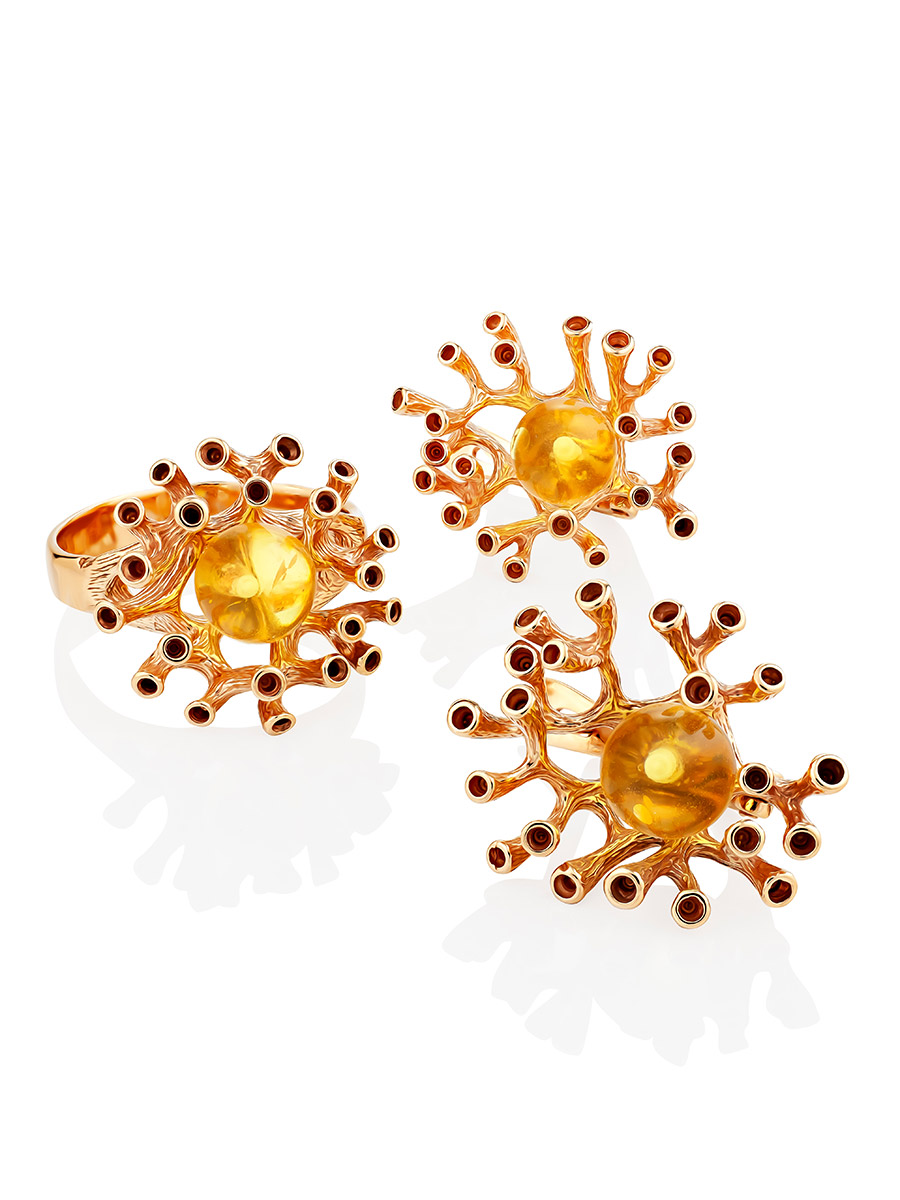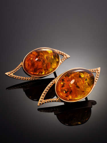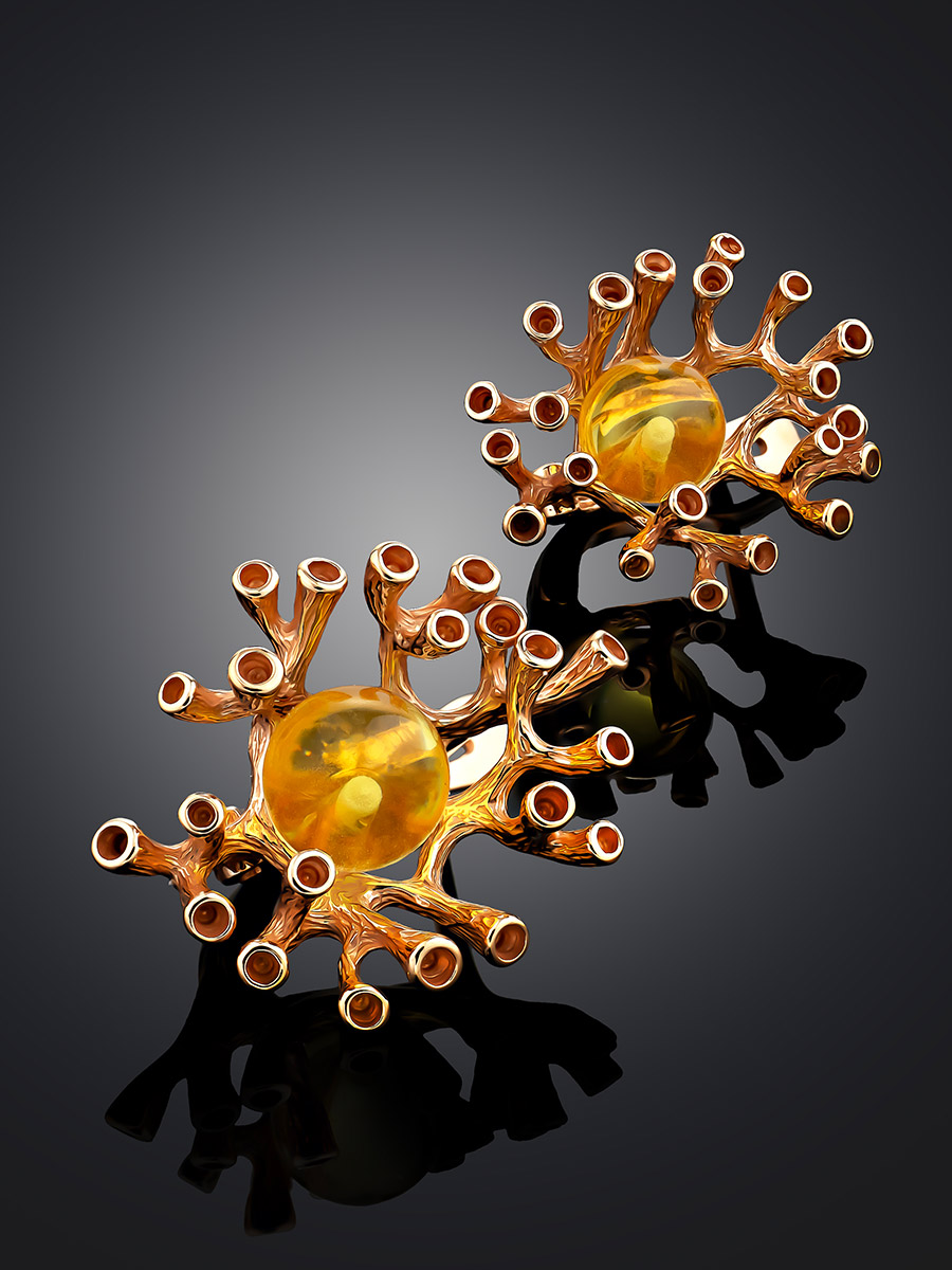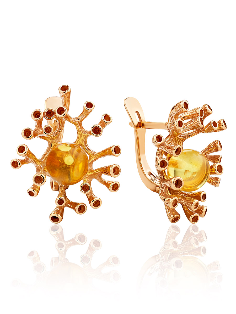 Позолоченные серьги, украшенные натуральным янтарём лимонного цвета «Барбадос»
