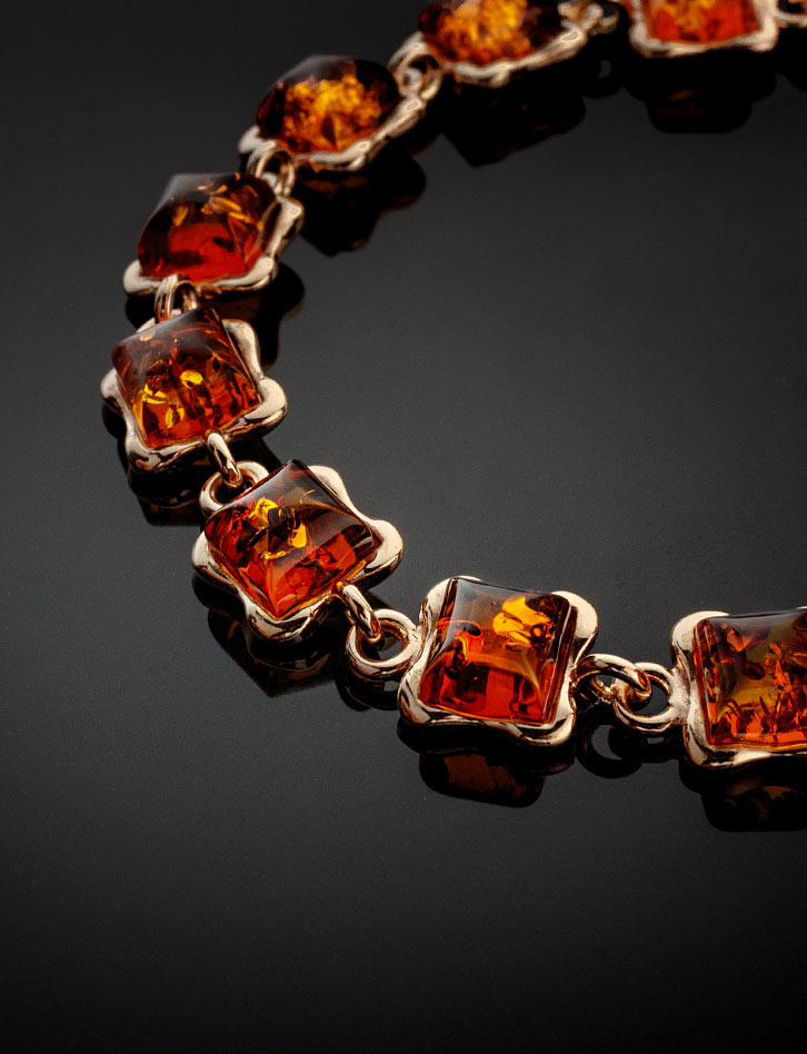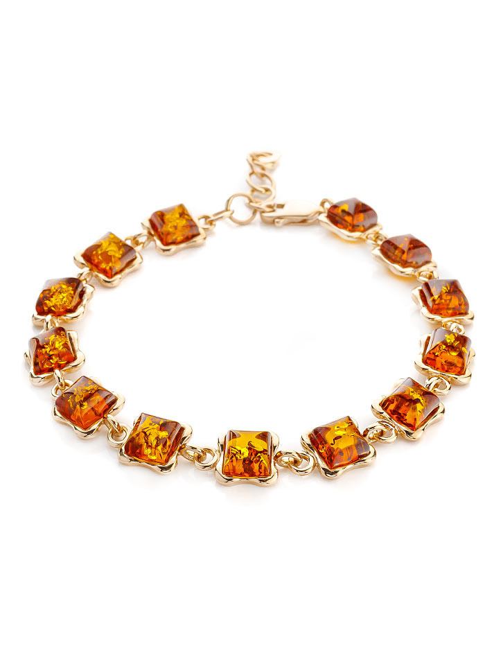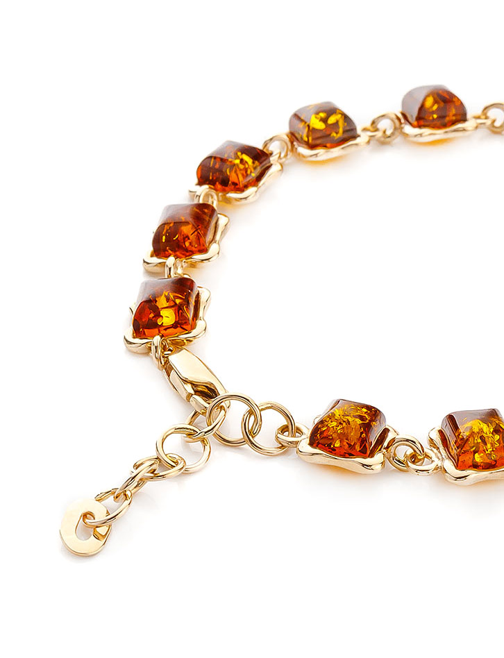 Позолоченный браслет с натуральным коньячным янтарём «Вега»