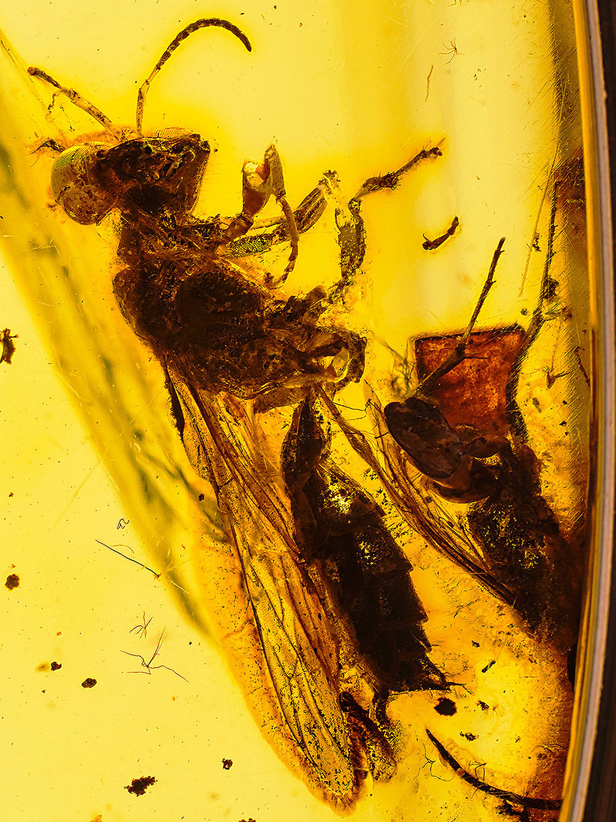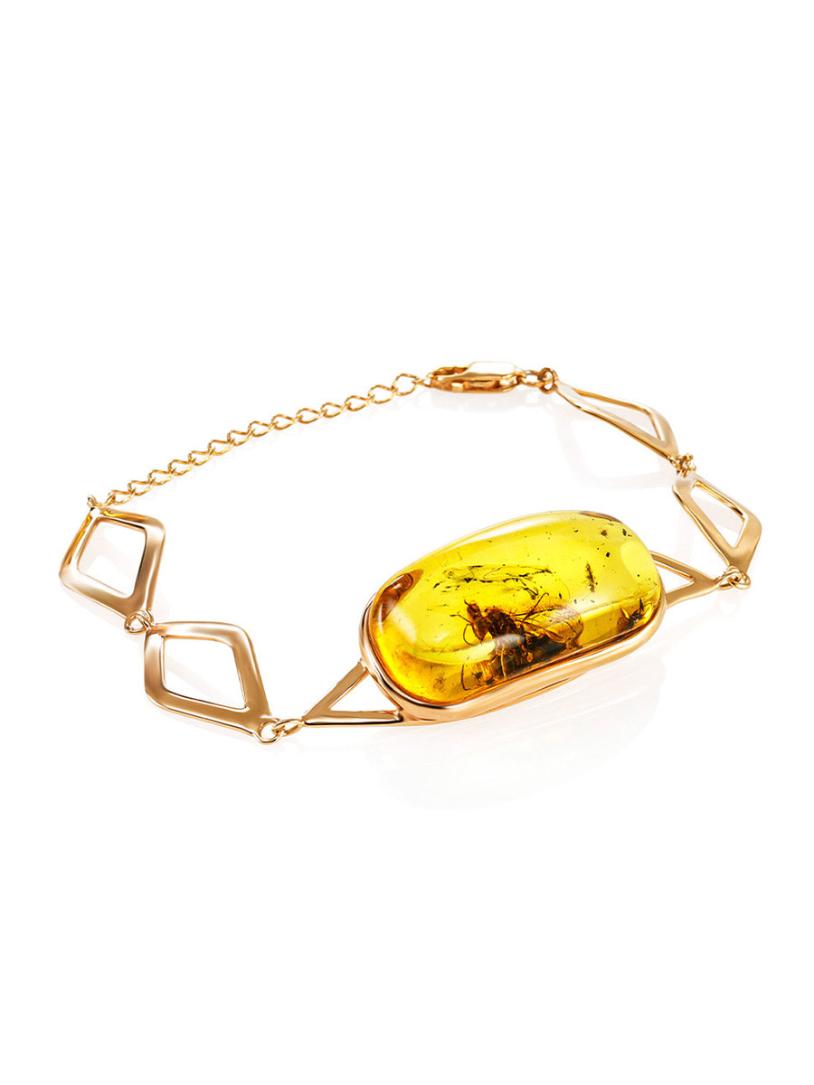 Позолоченный браслет, украшенный янтарём с инклюзом осы «Клио»