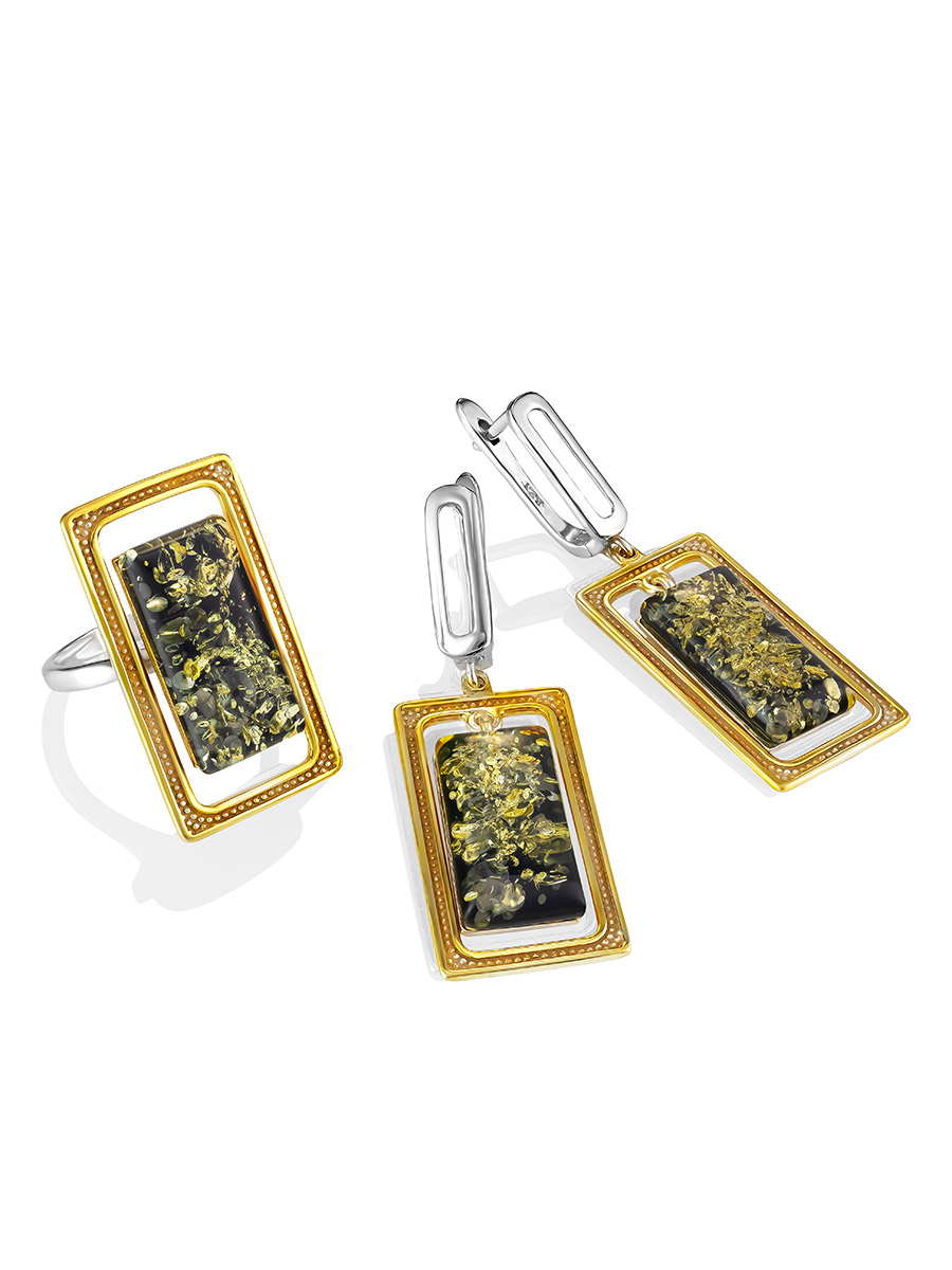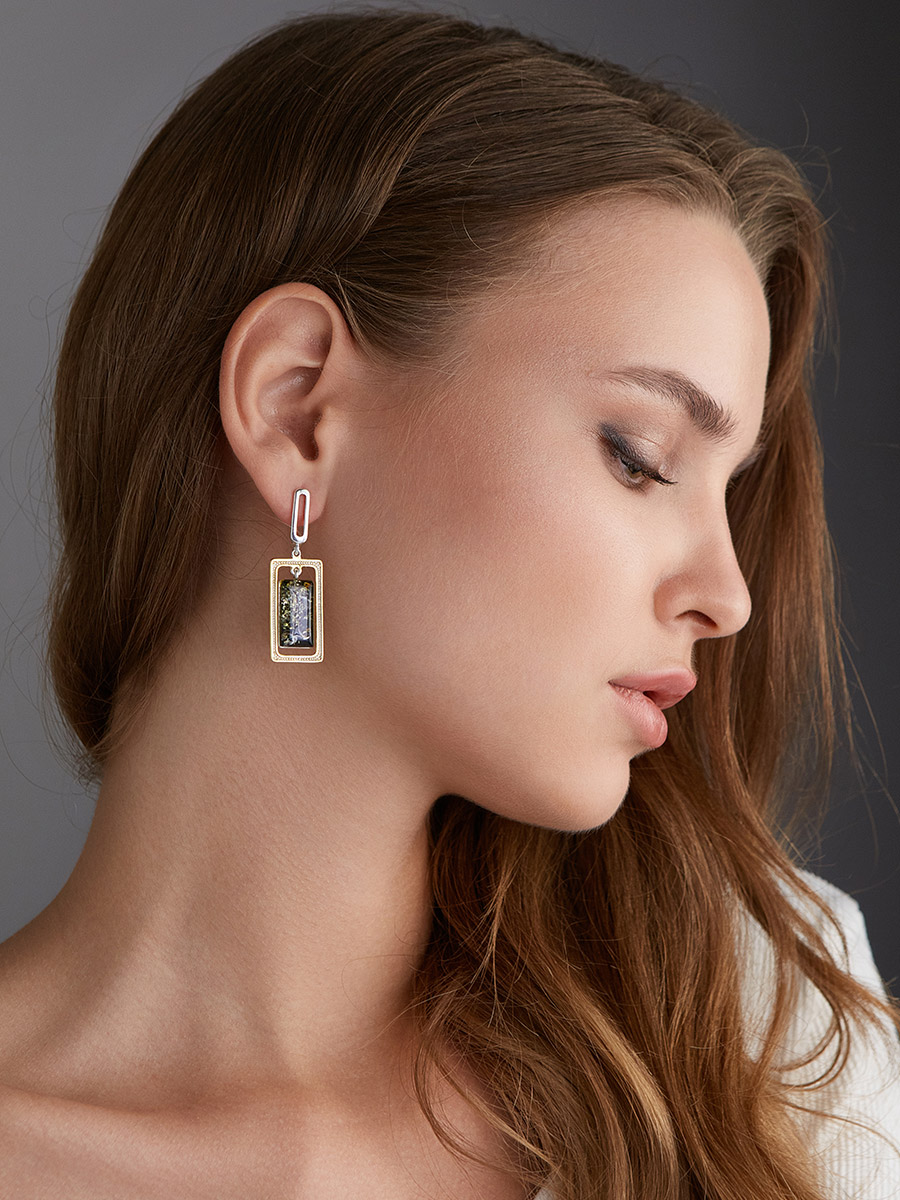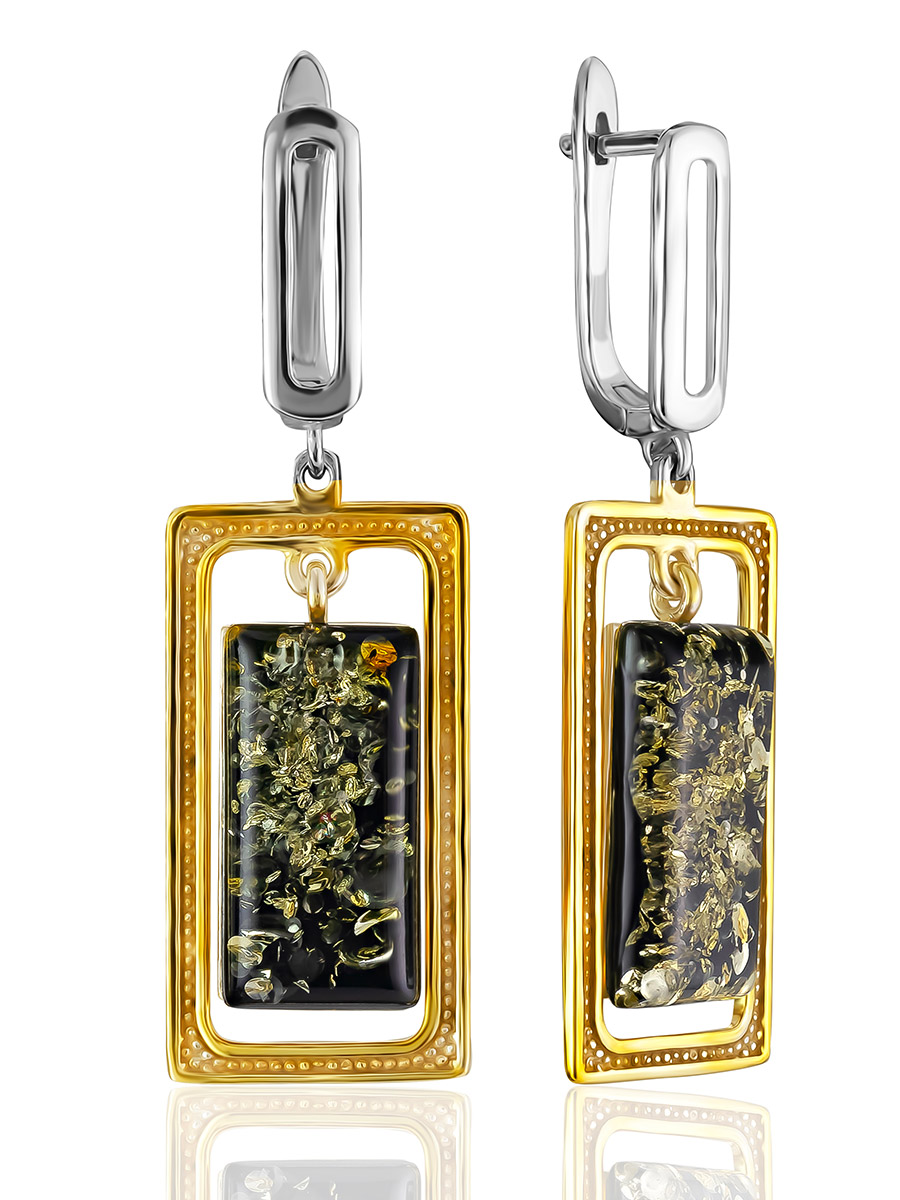 Прямоугольные серьги из зелёного янтаря в позолоченной оправе «Челси»