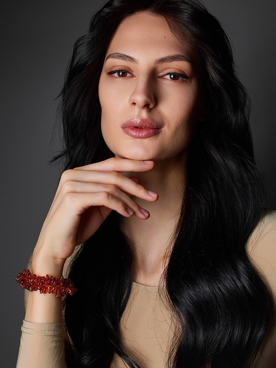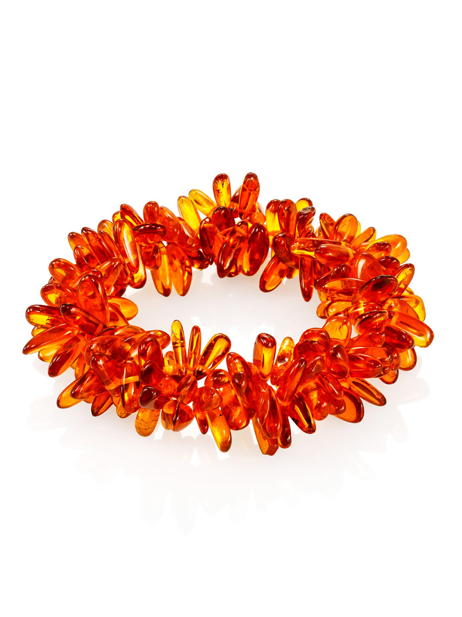 Пышный браслет из натурального янтаря красивого коньячного цвета «Хризантема»