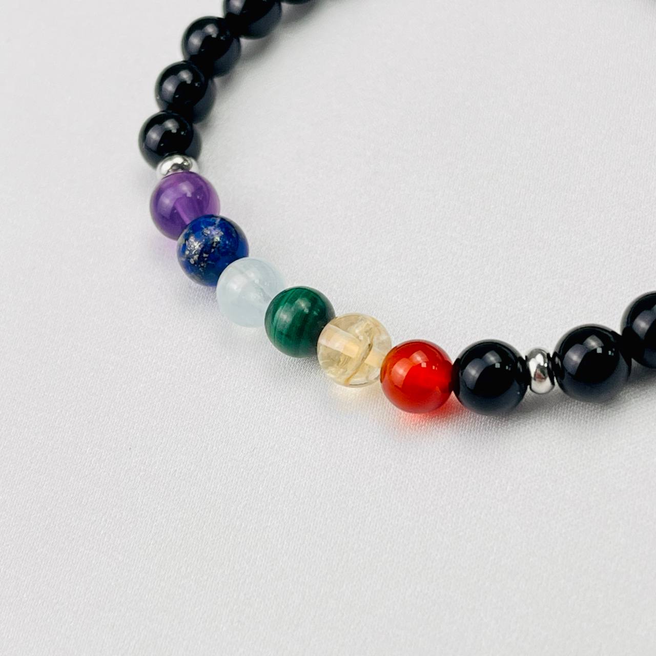 Радуга Самоцветов Браслет "7 чакр" из черного Агата и Самоцветов