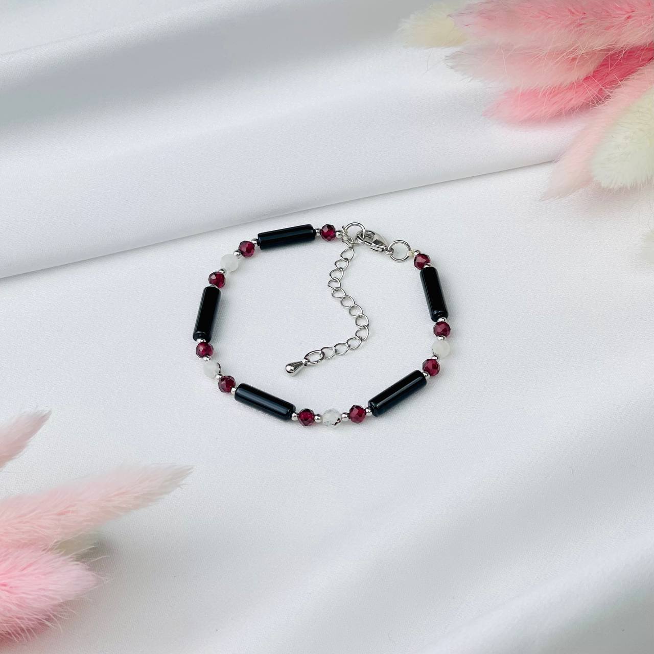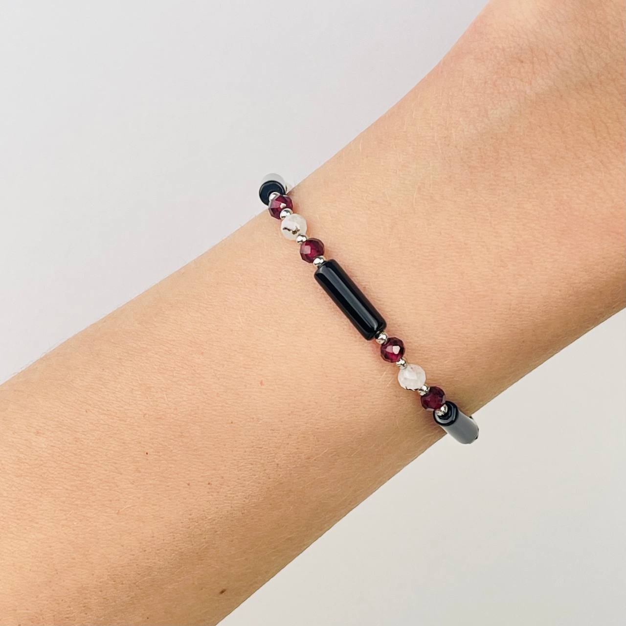Радуга Самоцветов Браслет Агата, Граната и Лунного камня