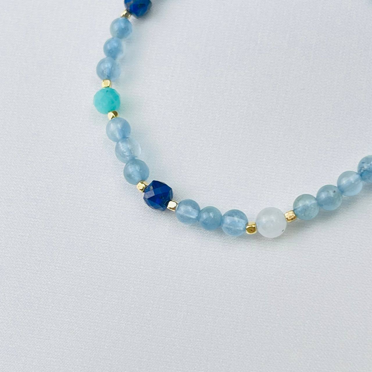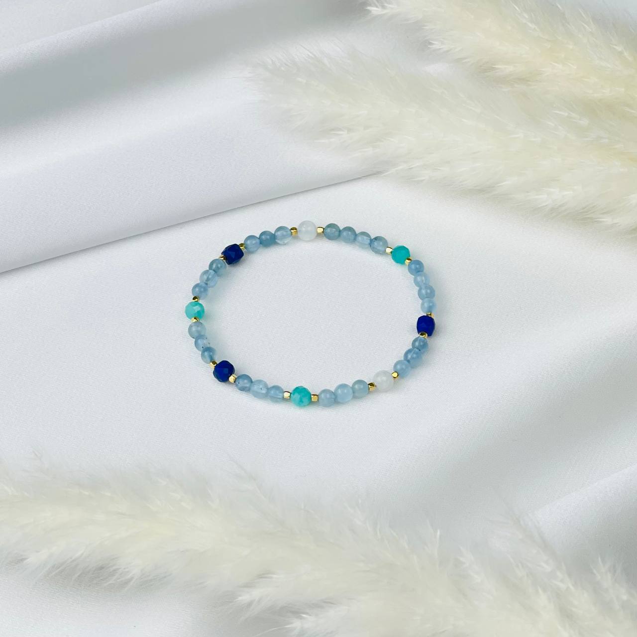 Радуга Самоцветов Браслет детский из Аквамарина, Амазонита, Лунного камня и Лазурита