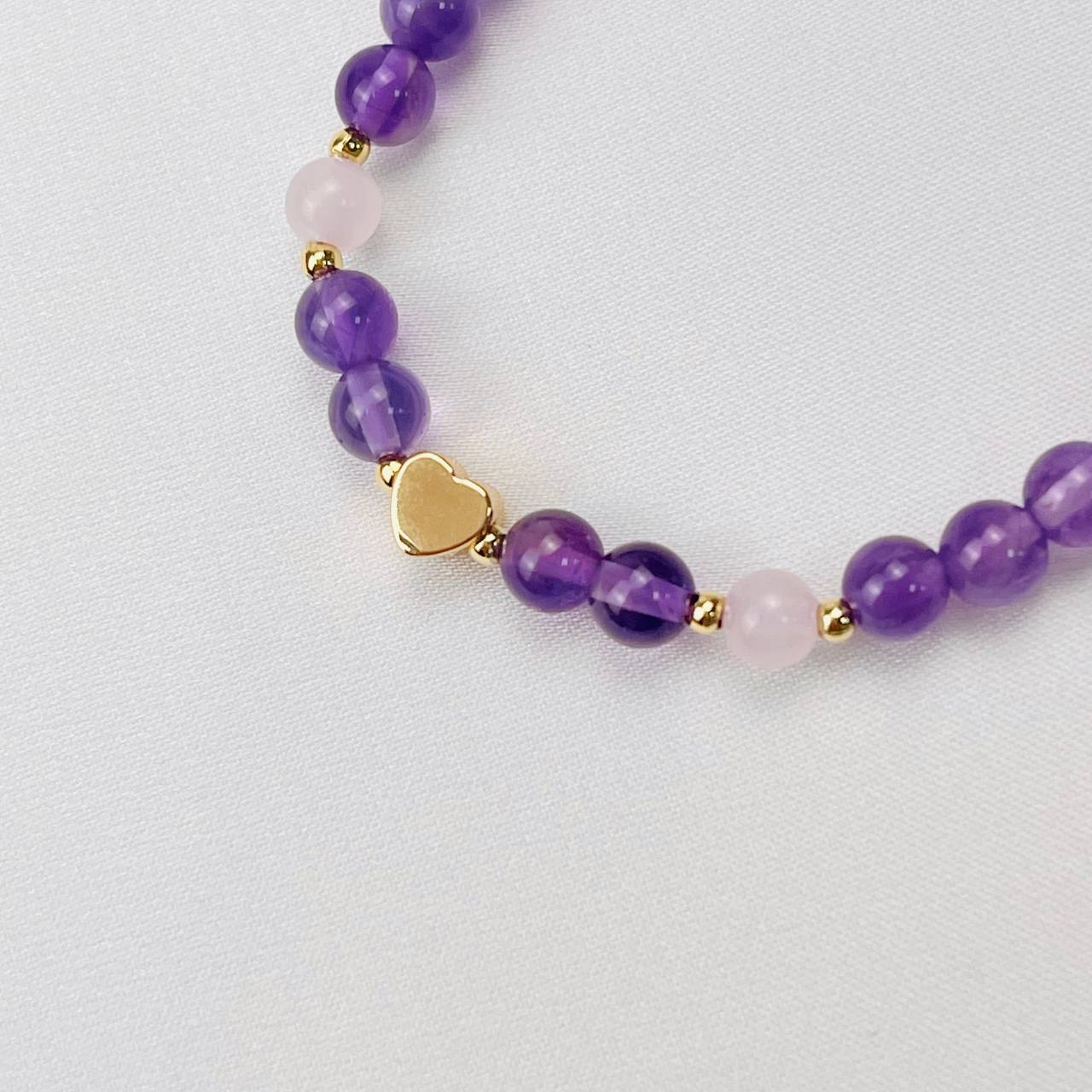 Радуга Самоцветов Браслет детский из Аметиста и Розового кварца со вставкой "Сердце"