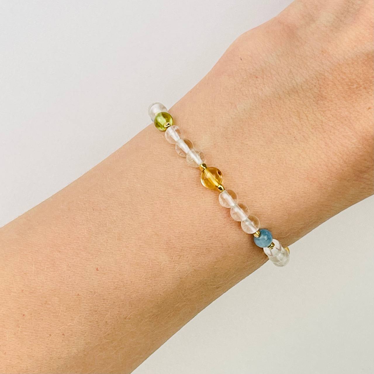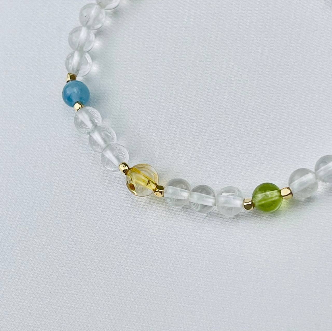 Радуга Самоцветов Браслет детский из Горного Хрусталя, Аквамарина, Цитрина и Хризолита