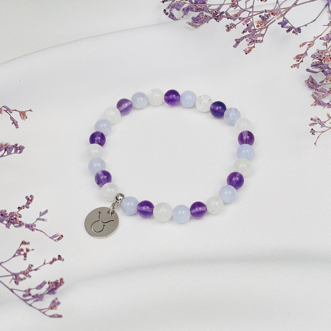 Радуга Самоцветов Браслет для "Тельца" из Агата, Аметиста и Лунного камня
