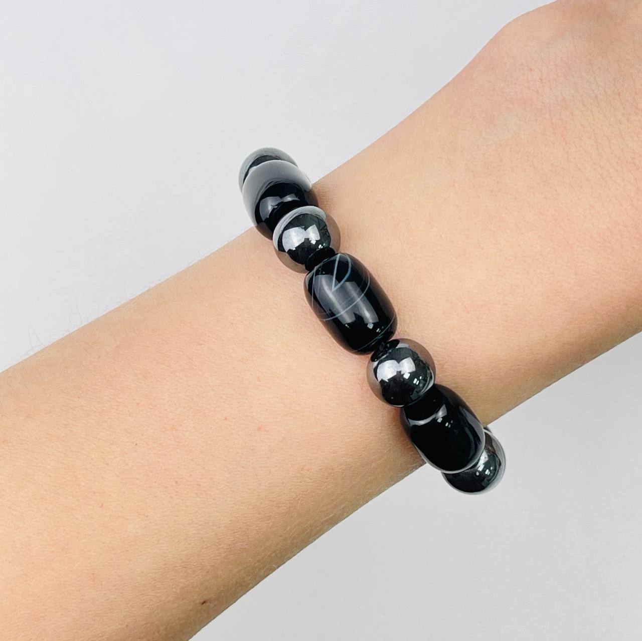 Цвет камня: Миксовый Месторождени..показатье: Бразилия Камень: Агат Вставка: Гематит Диаметр: 10 мм Поверхность: Гладкий Размер: 10х14 мм Производитель: Радуга Самоцветов (Россия)е: Бразилия