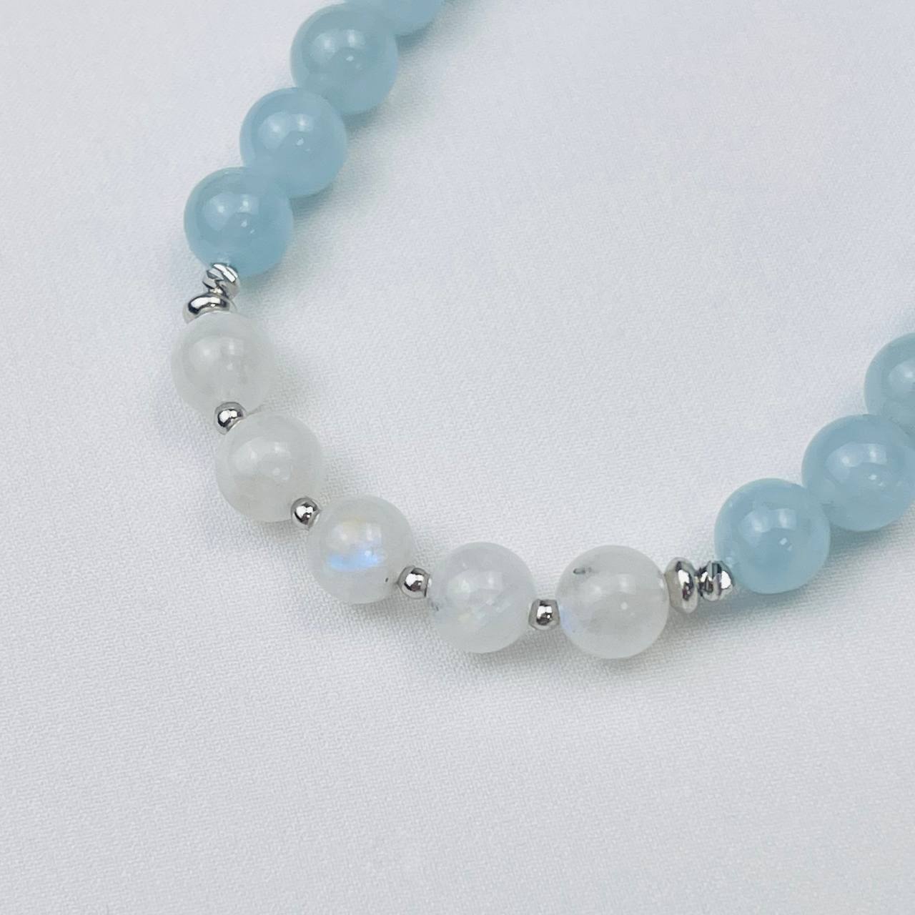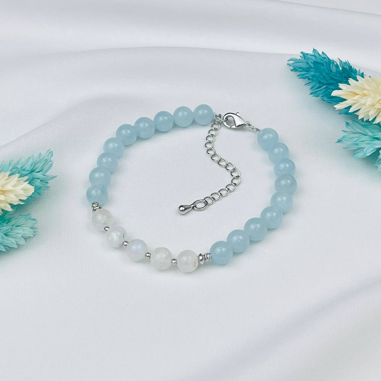 Радуга Самоцветов Браслет из Аквамарина и Лунного камня