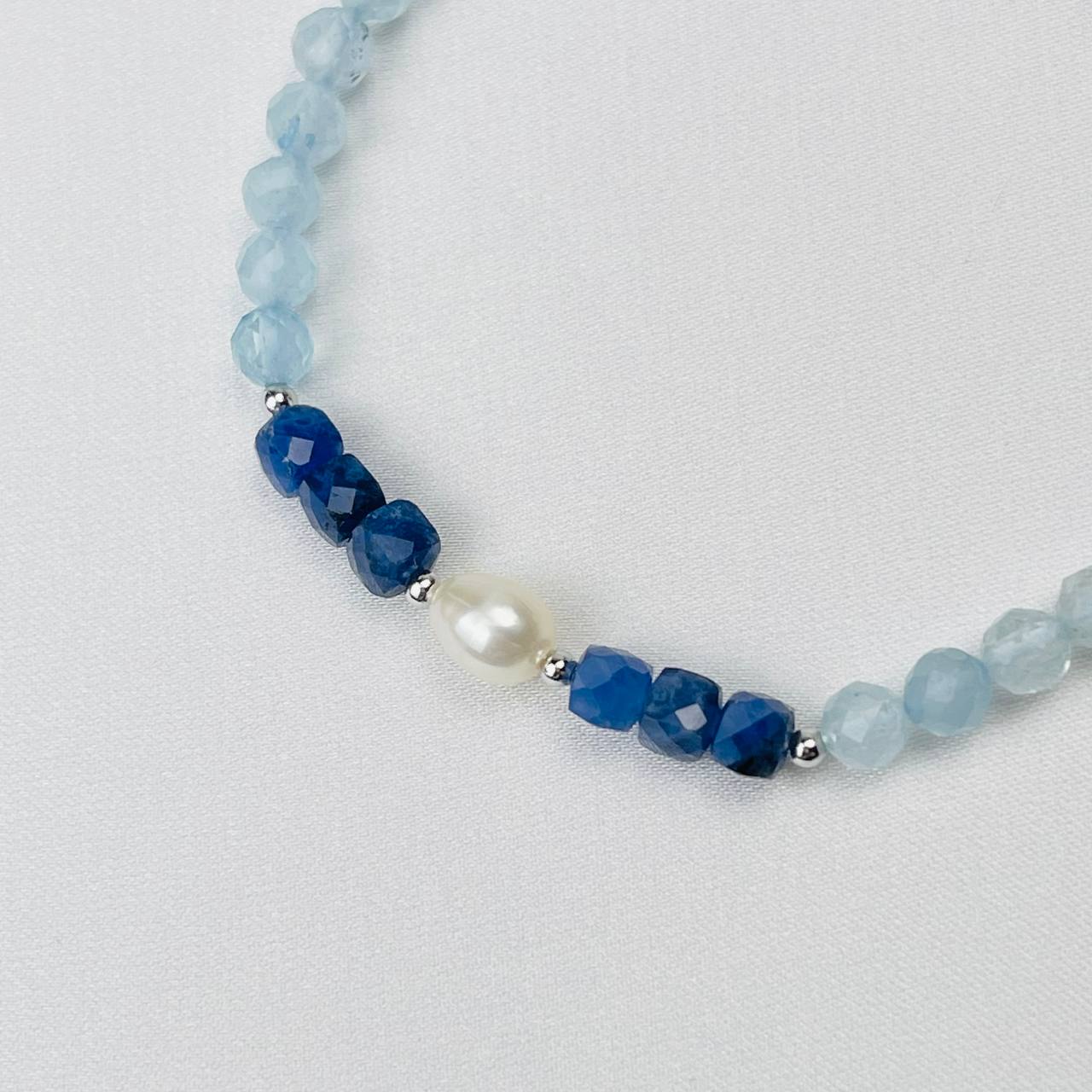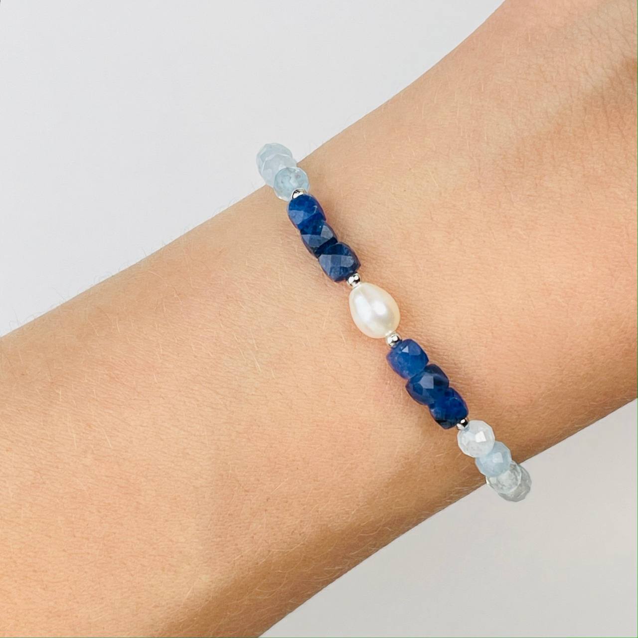 Радуга Самоцветов Браслет из Аквамарина,Содалита и Жемчуга