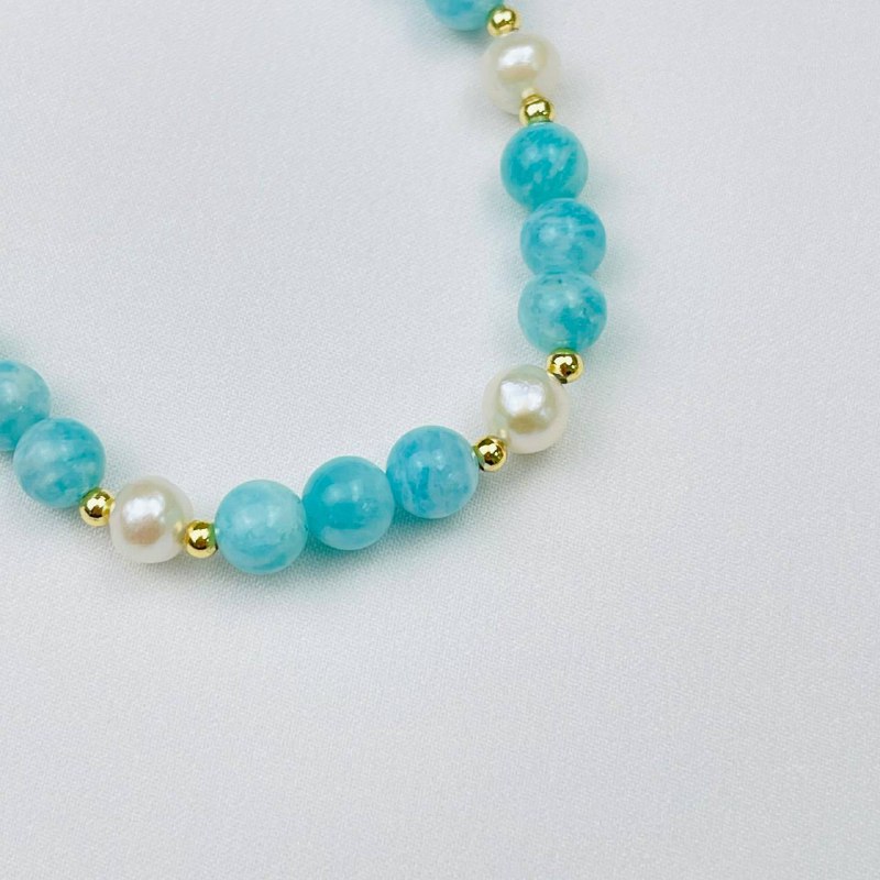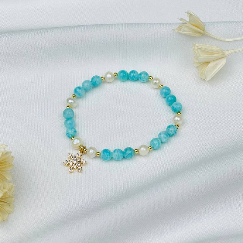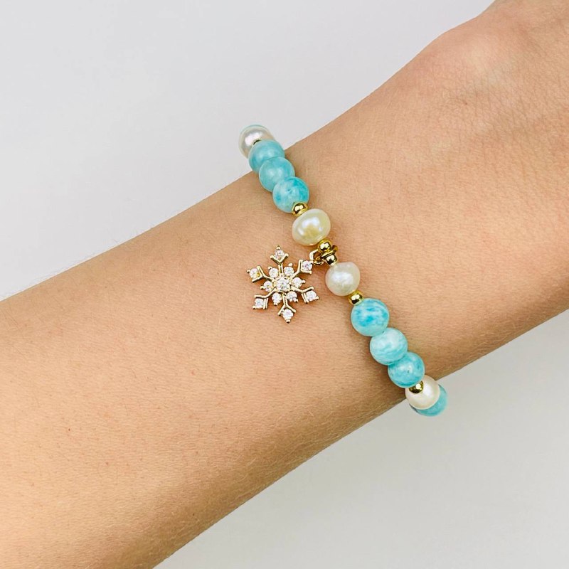 Радуга Самоцветов Браслет из Амазонита и Жемчуга с подвеской "снежинка"