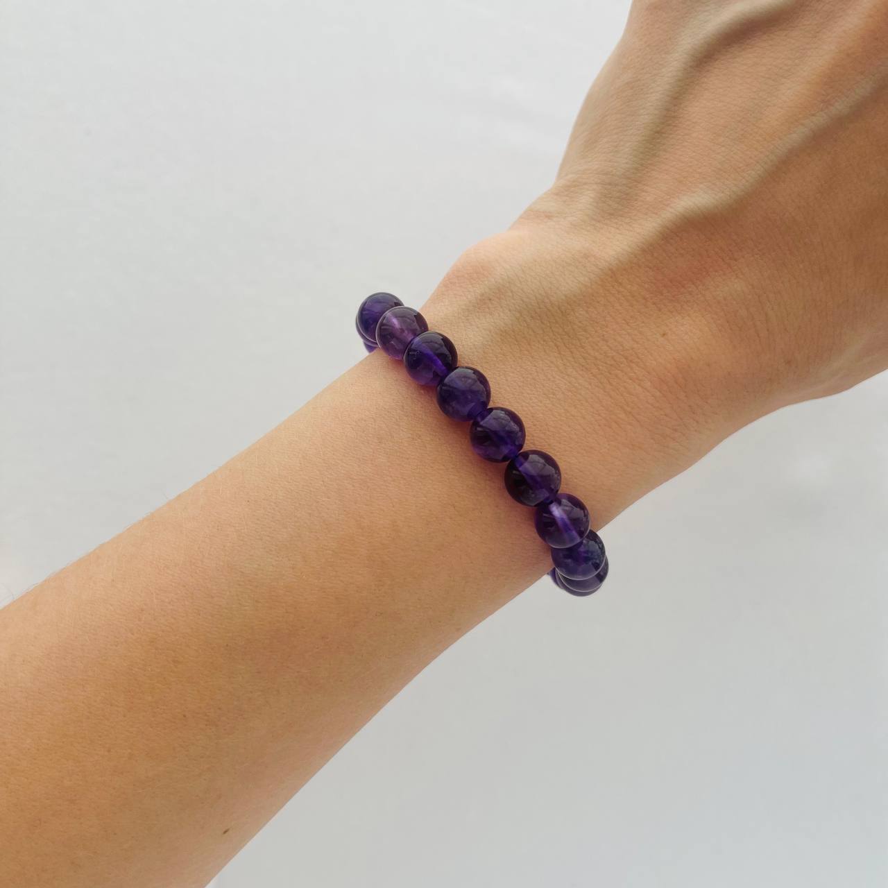 Цвет камня: Фиолетовый Месторожде..показатьние: Бразилия Камень: Аметист Диаметр: 8 мм Поверхность: Гладкий Производитель: Радуга Самоцветов (Россия) Тип замка: Резинкание: Бразилия