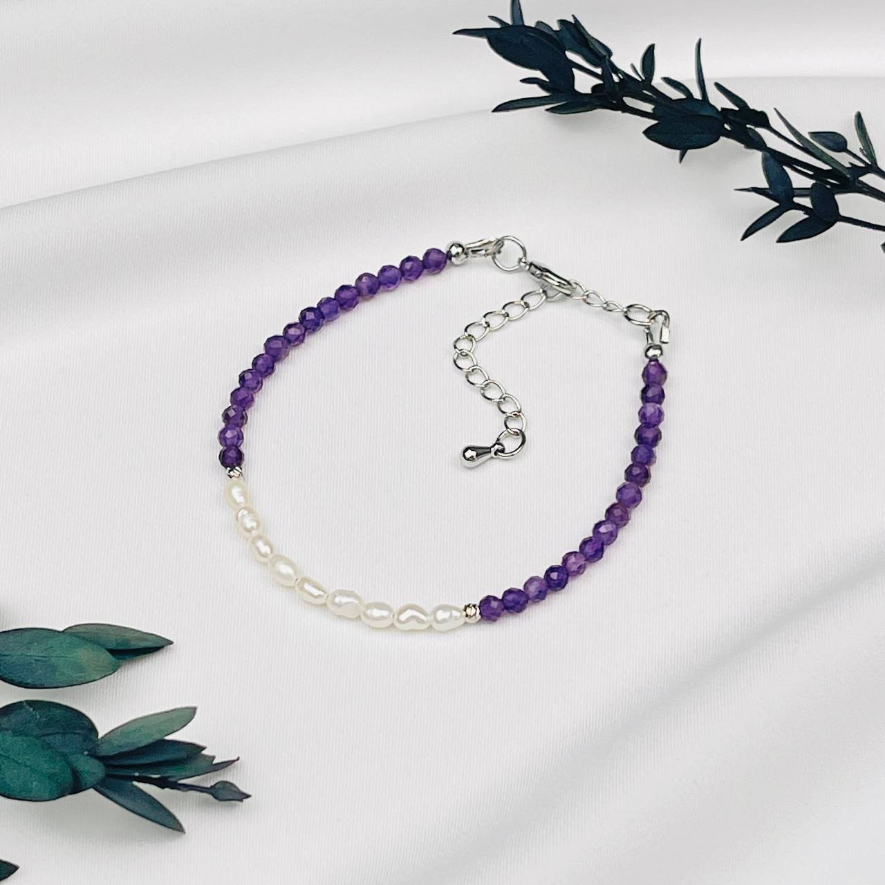 Радуга Самоцветов Браслет из Аметиста и Жемчуга