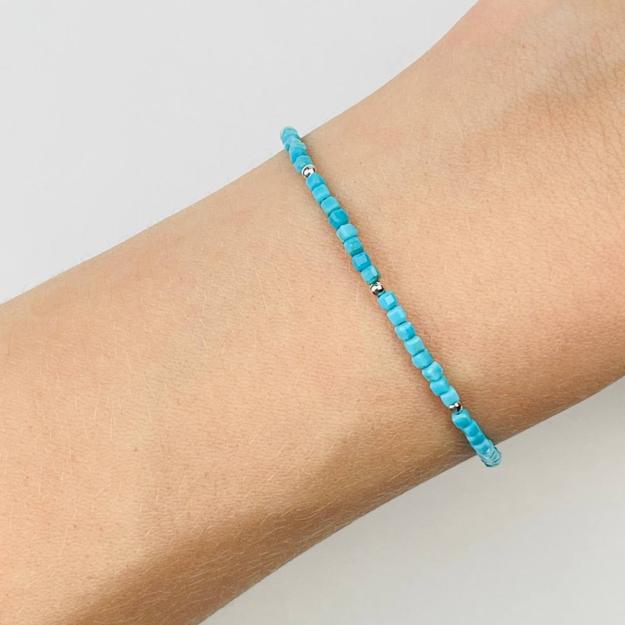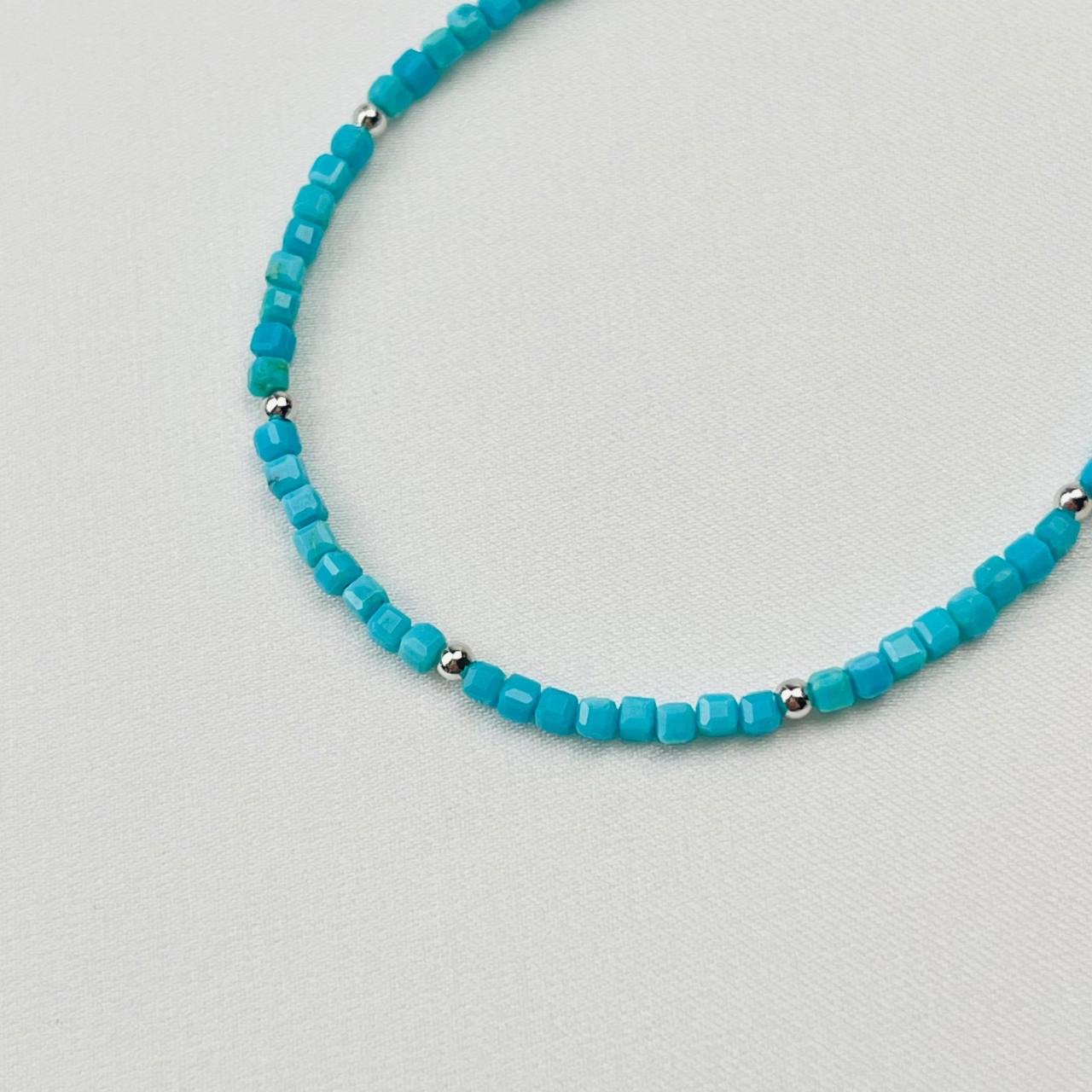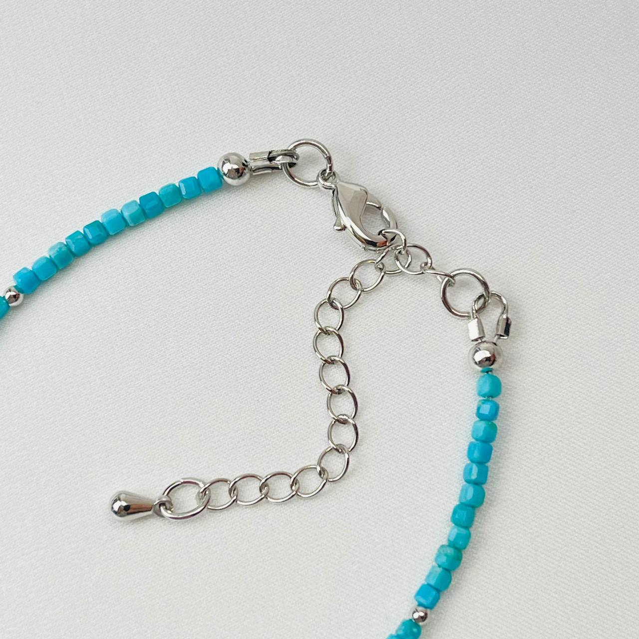 Цвет камня: Бирюзовый Месторожден..показатьие: Хубэй Камень: Бирюза Покрытие: Бижутерный сплав Поверхность: Граненый Размер: 2х2 мм Производитель: Радуга Самоцветов (Россия) Тип замка: Карабин с цепочкойие: Хубэй