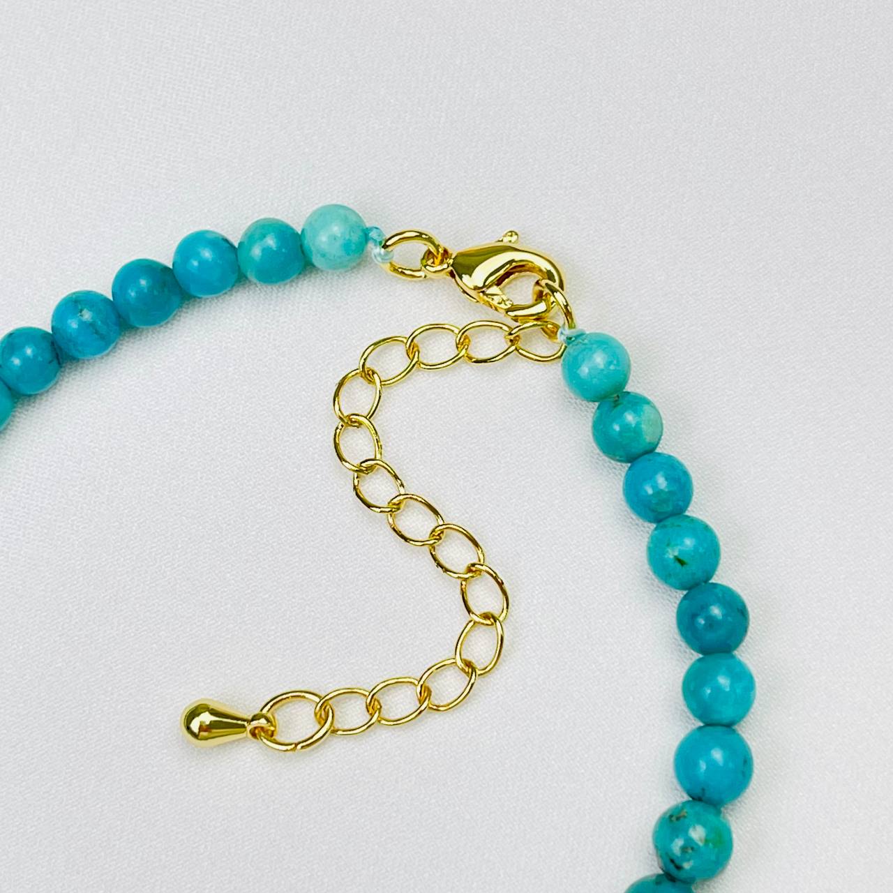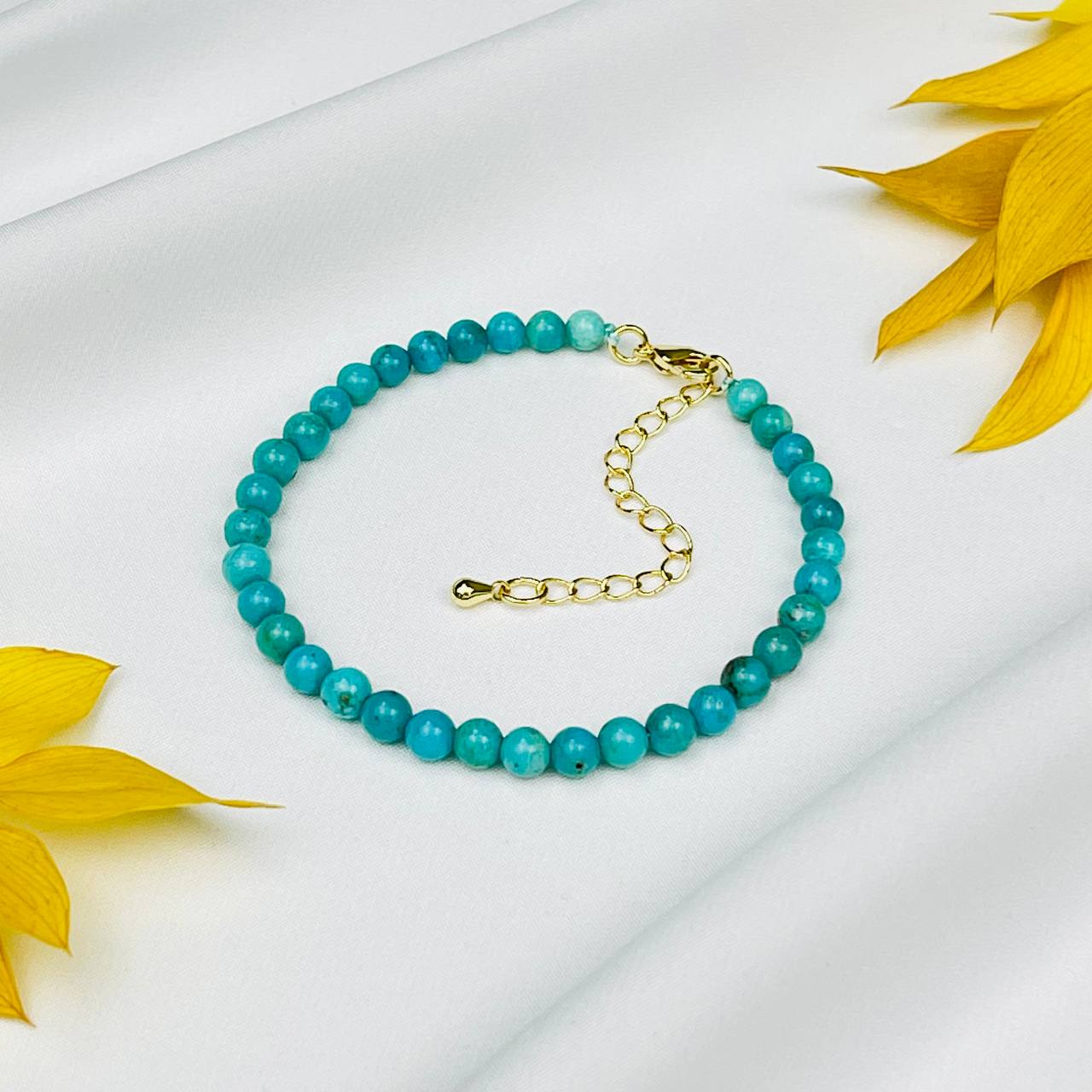 Цвет камня: Бирюзовый Месторожден..показатьие: Хубэй Камень: Бирюза Покрытие: Золото 14К Диаметр: 4,5 мм Поверхность: Гладкий Производитель: Радуга Самоцветов (Россия) Тип замка: Карабин с цепочкойие: Хубэй