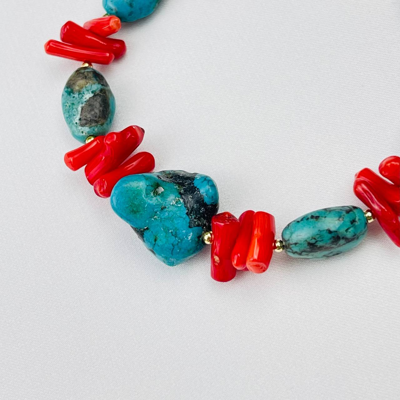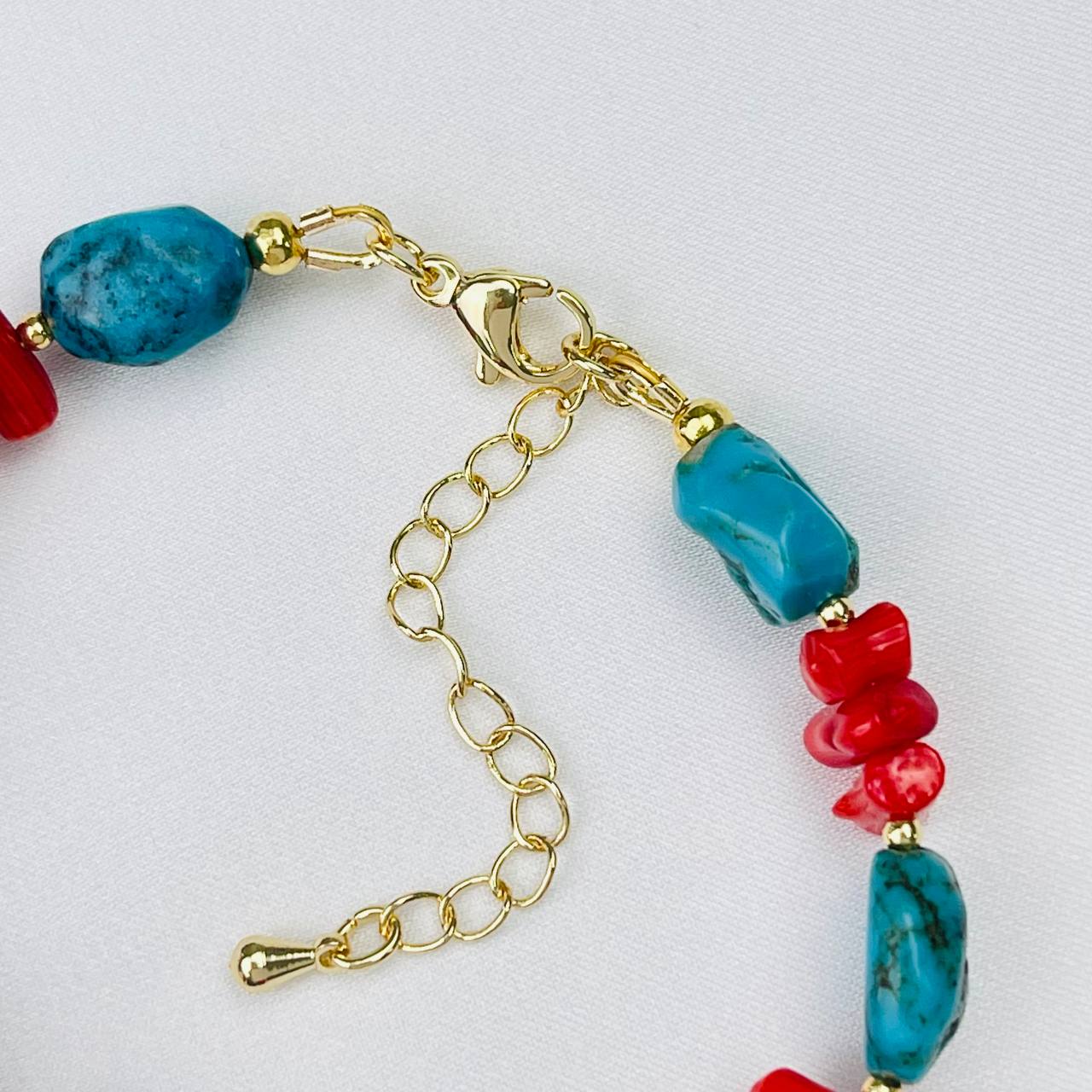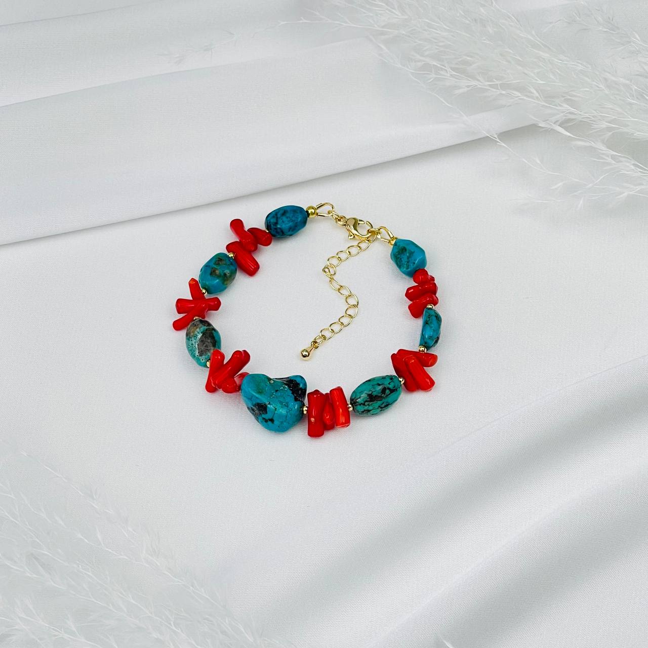 Радуга Самоцветов Браслет из Бирюзы и Коралла