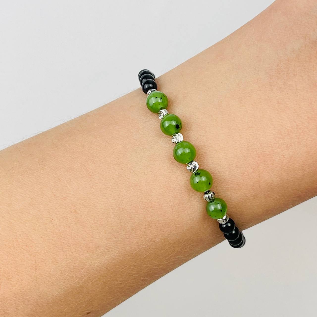 Радуга Самоцветов Браслет из черного Агата и Нефрита
