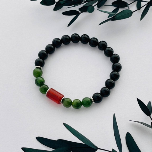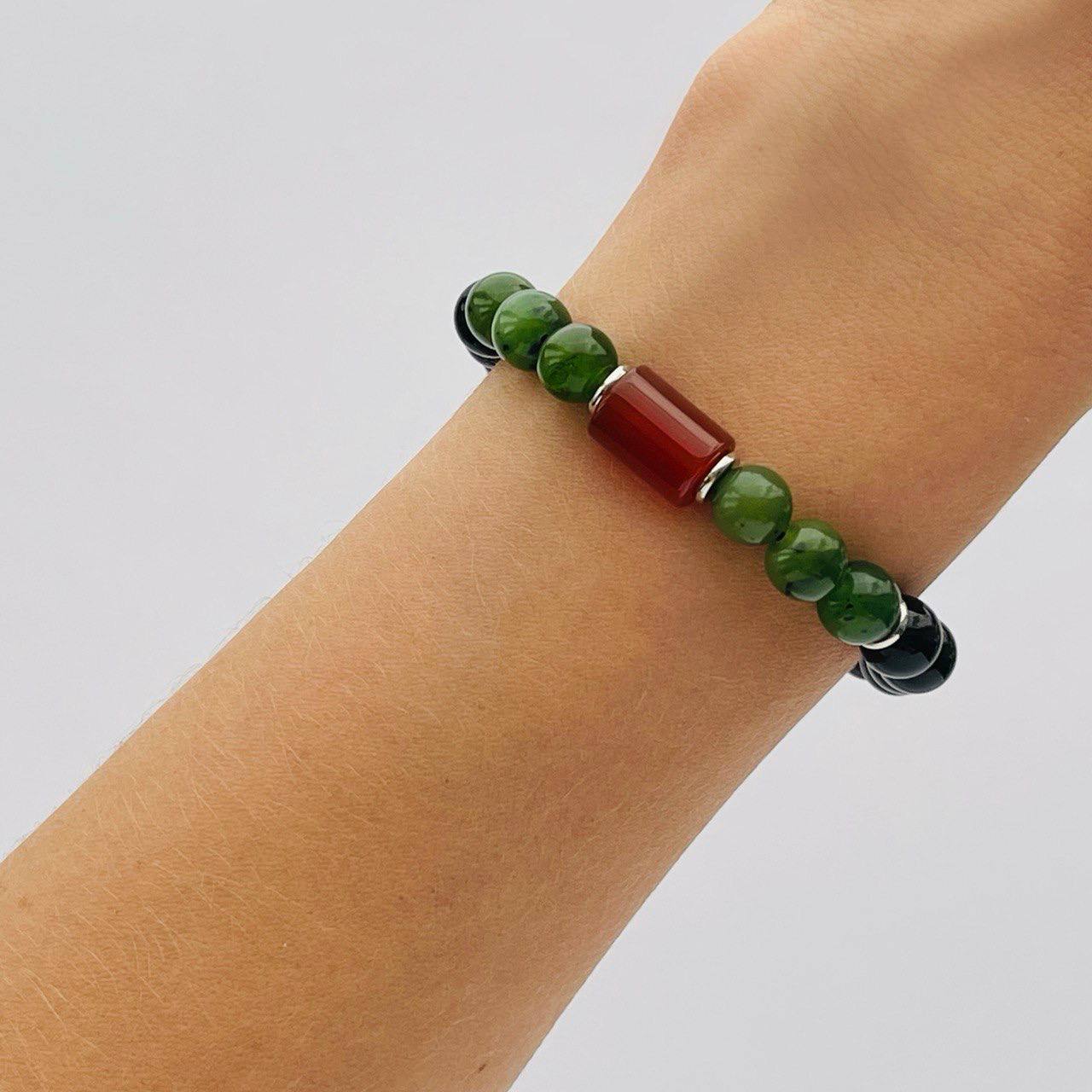 Радуга Самоцветов Браслет из черного Агата, Нефрита и Сердолика