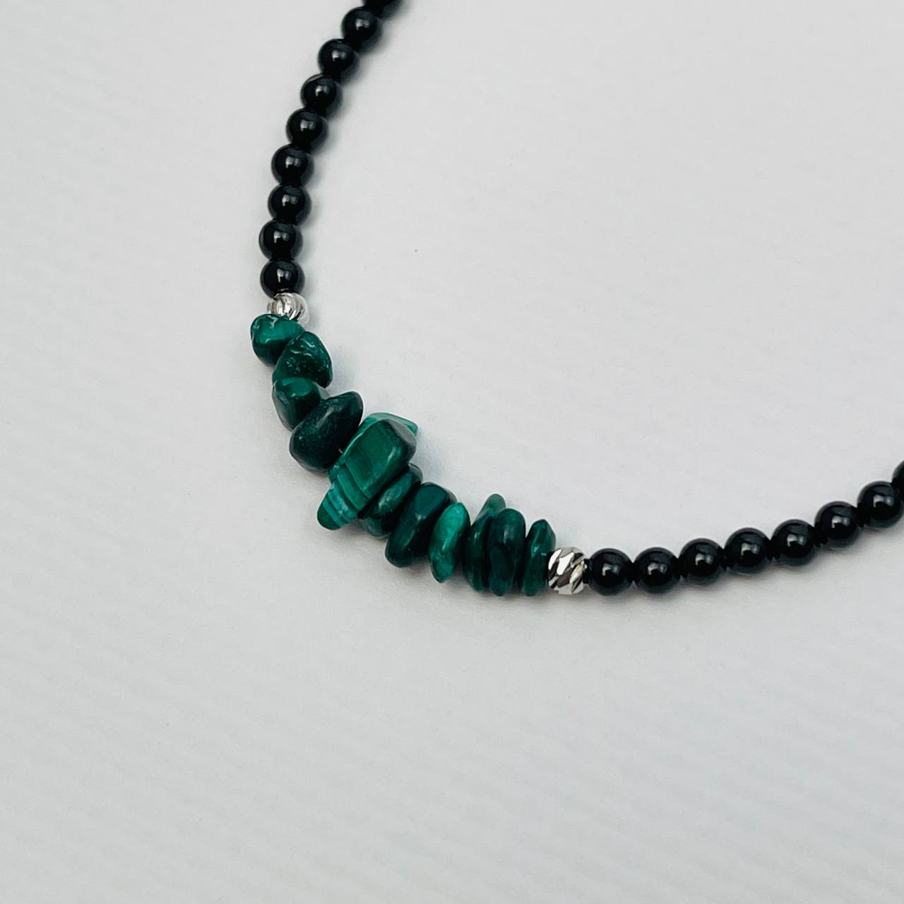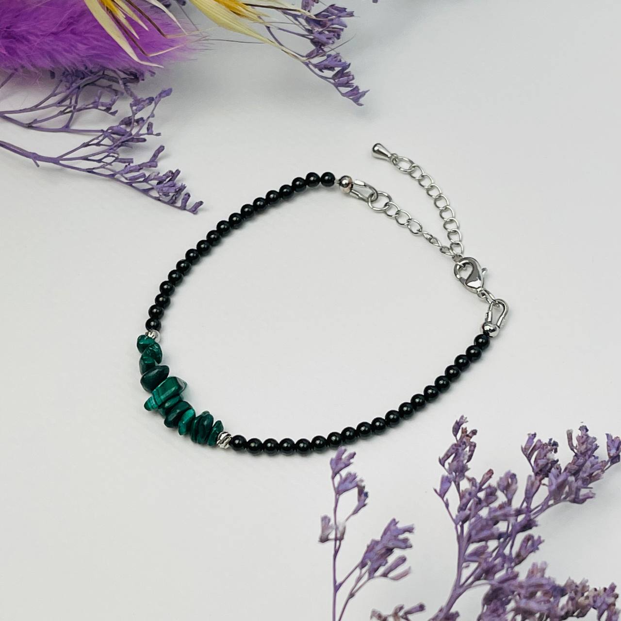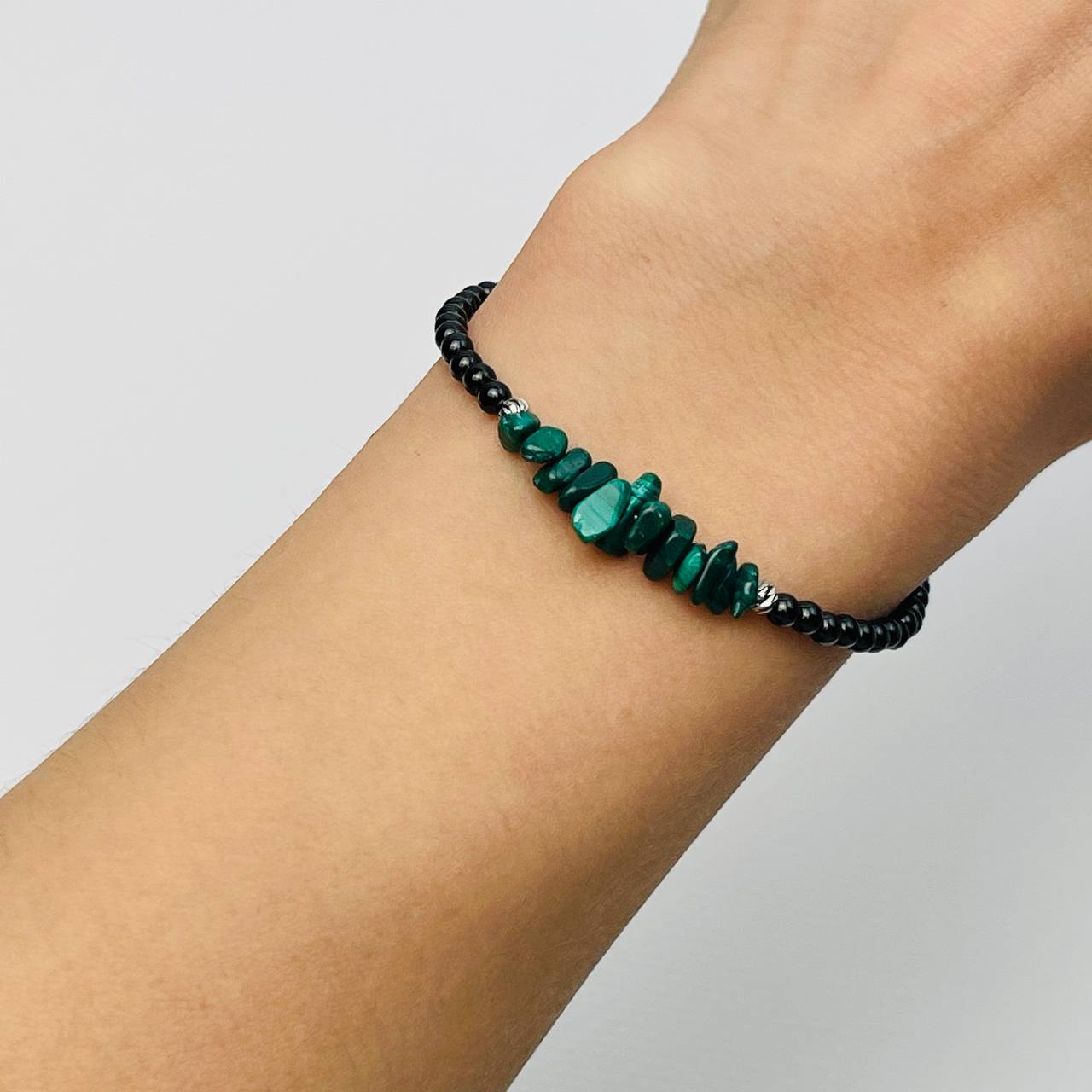 Радуга Самоцветов Браслет из черного Турмалина с Малахитом