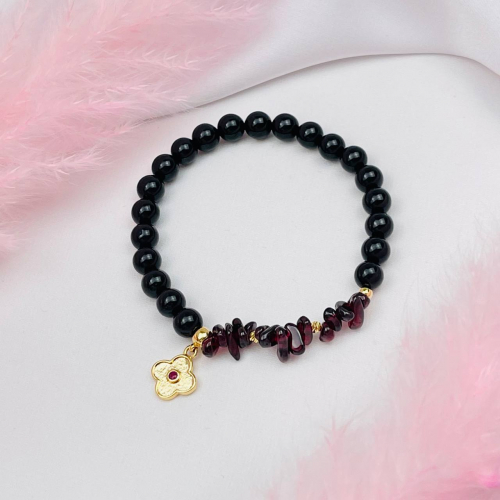 Радуга Самоцветов Браслет из черного Турмалина "Шерл" и Граната с подвеской