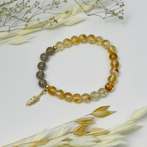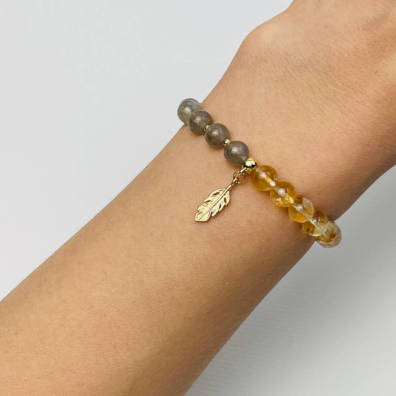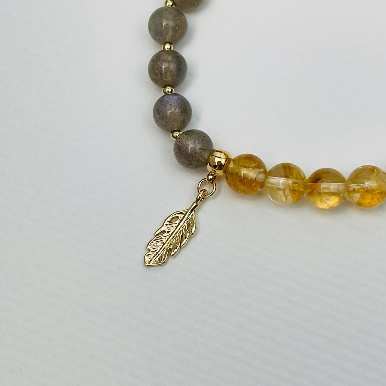 Радуга Самоцветов Браслет из Цитрина и Лабрадора с подвеской "Перо"