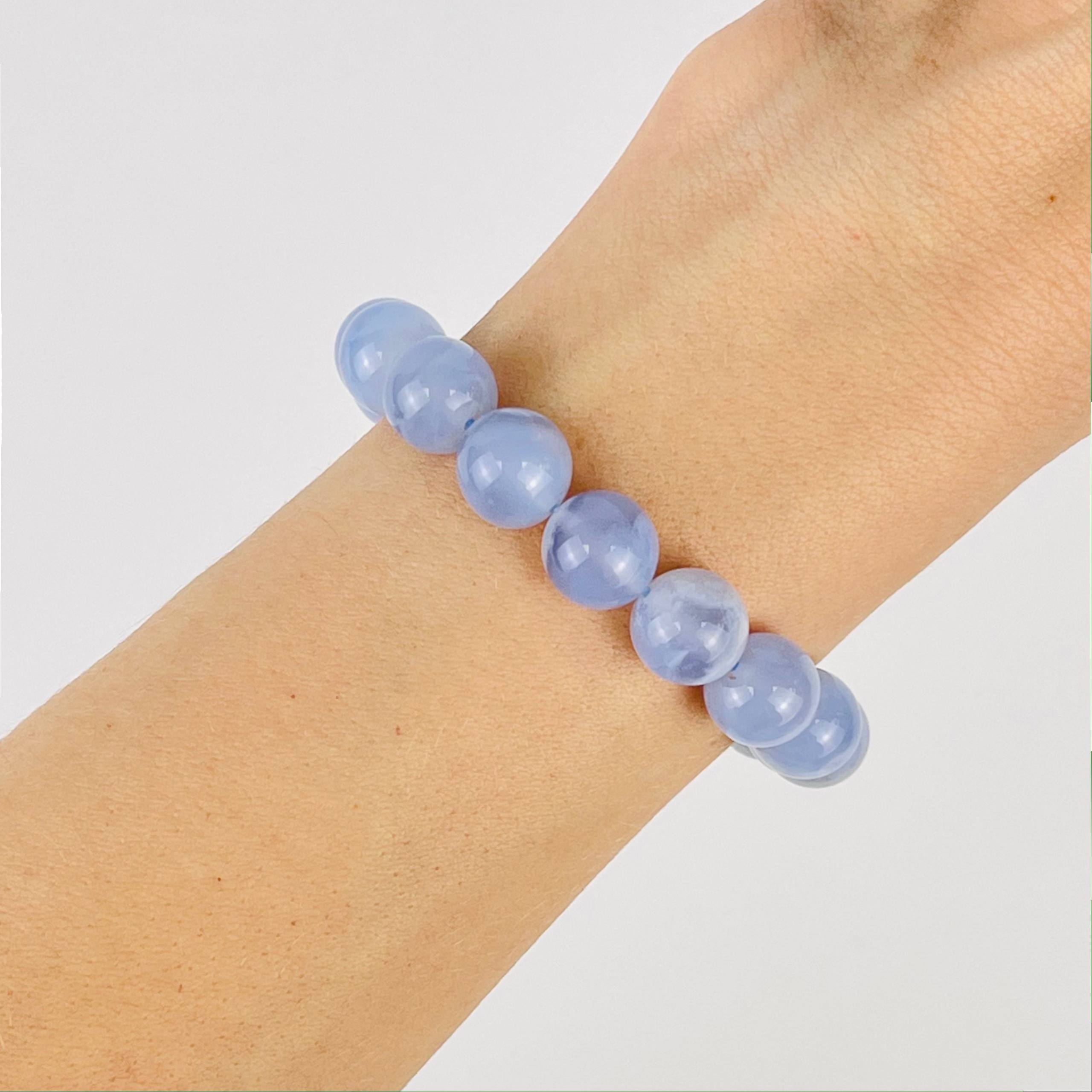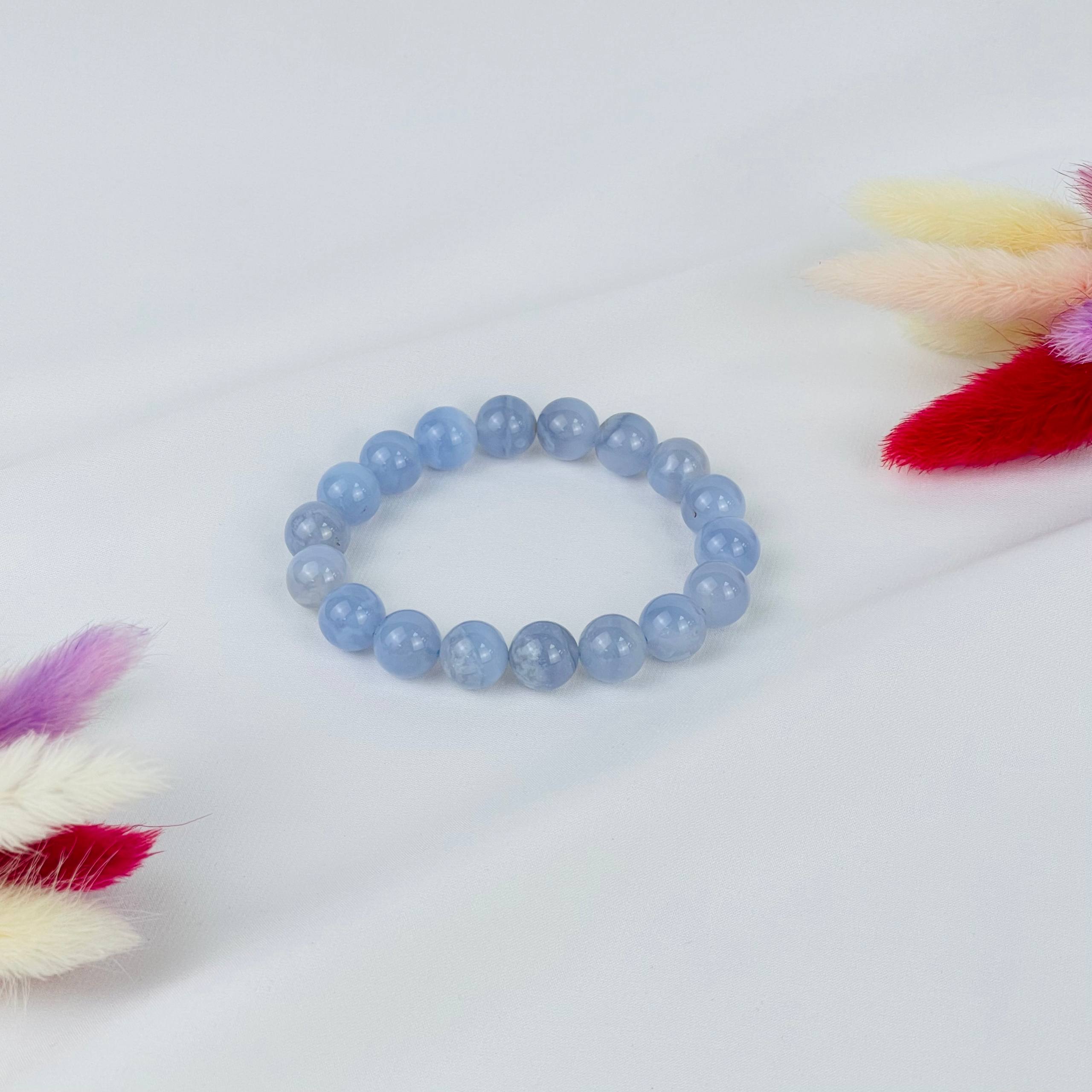 Цвет камня: Голубой Месторождение..показать: Бразилия Камень: Голубой агат Диаметр: 10,5 мм Поверхность: Гладкий Производитель: Радуга Самоцветов (Россия) Тип замка: Резинка: Бразилия