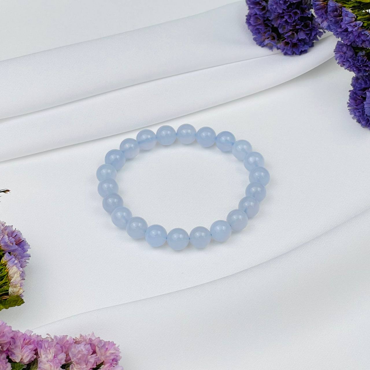 Камень: Халцедон Цвет камня: Голу..показатьбой Месторождение: Бразилия Диаметр: 8 мм Поверхность: Гладкий Производитель: Радуга Самоцветов (Россия) Тип замка: Резинкабой