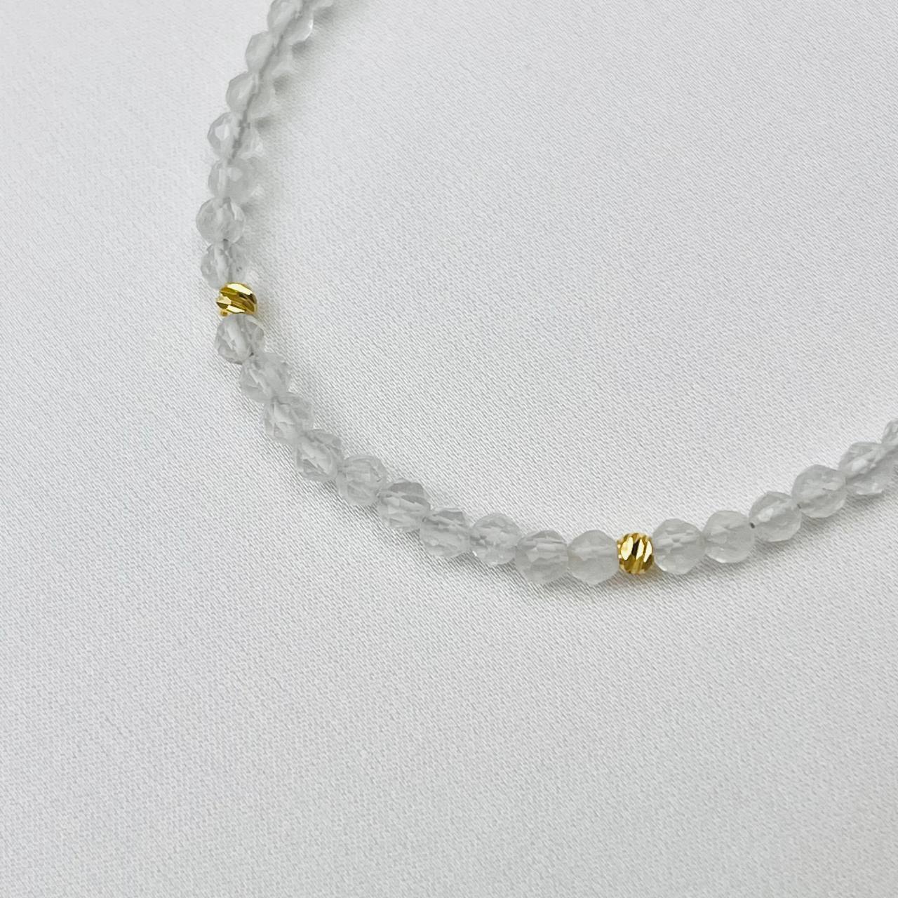 Цвет камня: Прозрачный Месторожде..показатьние: Бразилия Камень: Горный хрусталь Покрытие: Золото 14К Диаметр: 3 мм Поверхность: Граненый Производитель: Радуга Самоцветов (Россия) Тип замка: Карабин с цепочкойние: Бразилия