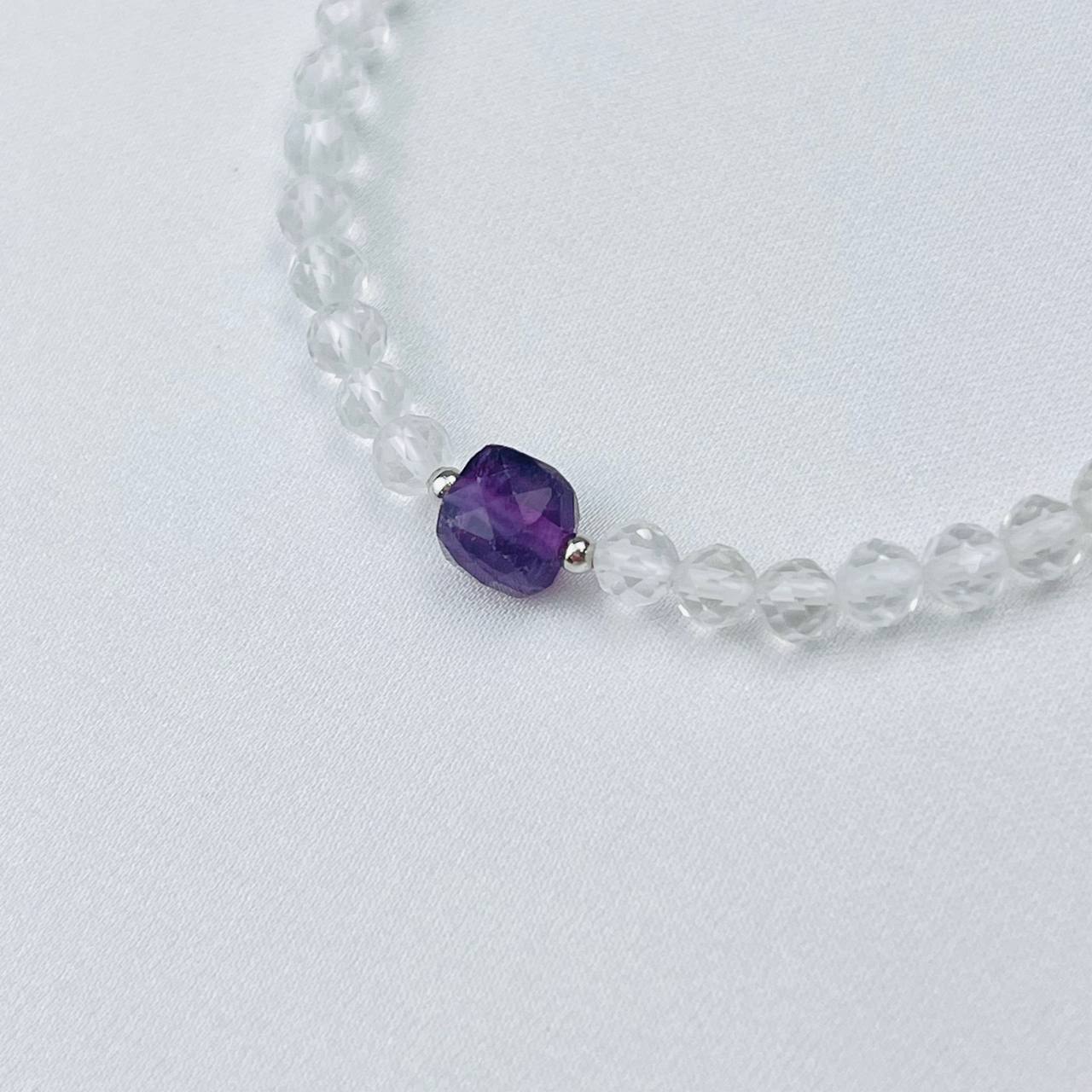 Цвет камня: Миксовый Месторождени..показатье: Бразилия Камень: Горный хрусталь Вставка: Аметист Покрытие: Бижутерный сплав Диаметр: 4 мм Поверхность: Граненый Размер: 6х6 мм Производитель: Радуга Самоцветов (Россия) Тип замка: Карабин с цепочкойе: Бразилия