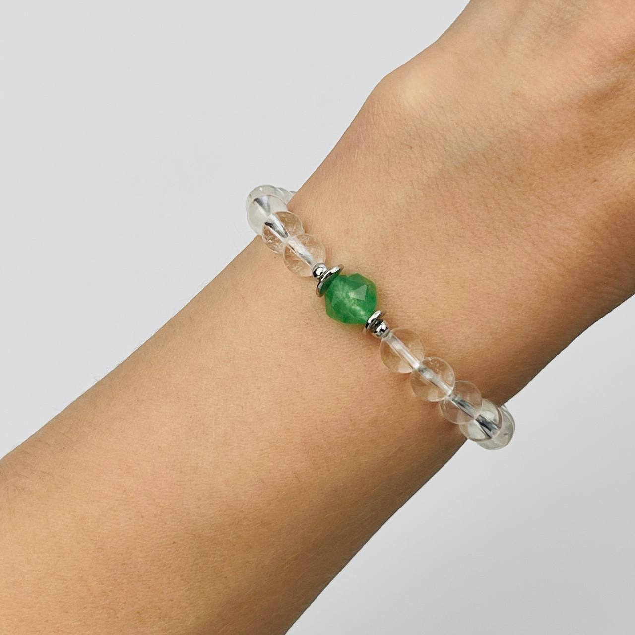 Радуга Самоцветов Браслет из Горного Хрусталя с зеленым Кварцем