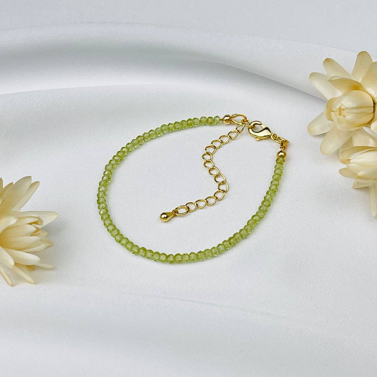 Цвет камня: Зелёный Месторождение..показать: США Камень: Хризолит Покрытие: Золото 14К Поверхность: Граненый Размер: 2х3 мм Производитель: Радуга Самоцветов (Россия) Тип замка: Карабин с цепочкой: США