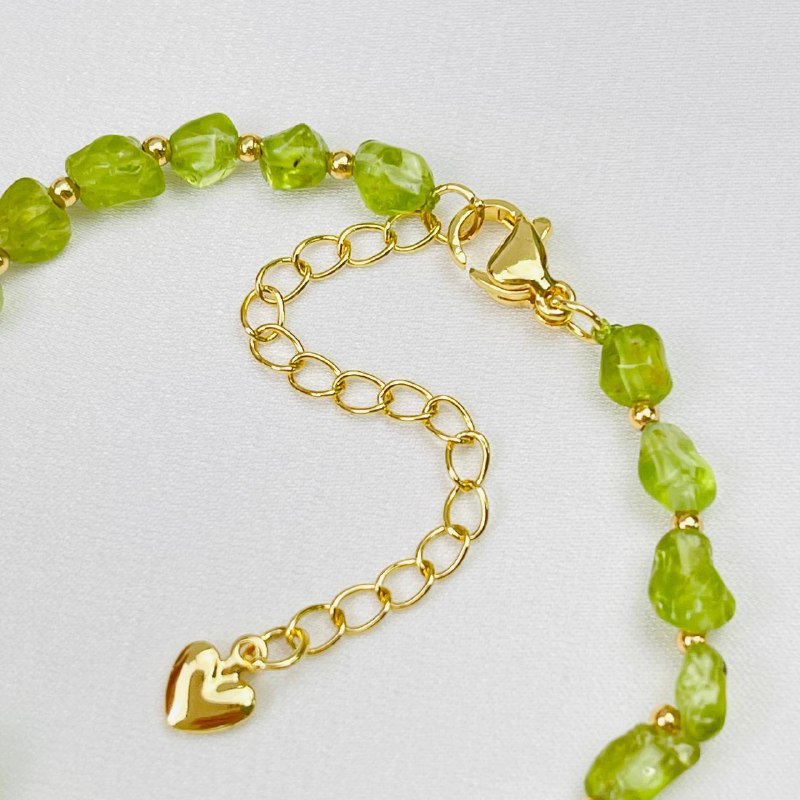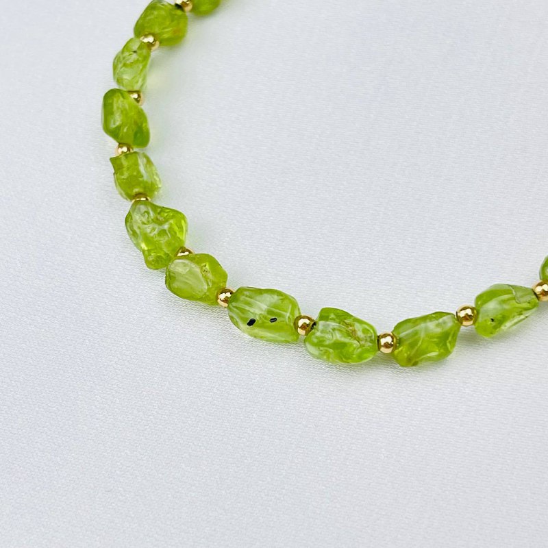 Цвет камня: Зелёный Месторождение..показать: США Камень: Хризолит Покрытие: Золото 14К Диаметр: 4-5 мм Поверхность: Необработанный Производитель: Радуга Самоцветов (Россия) Тип замка: Карабин с цепочкой: США