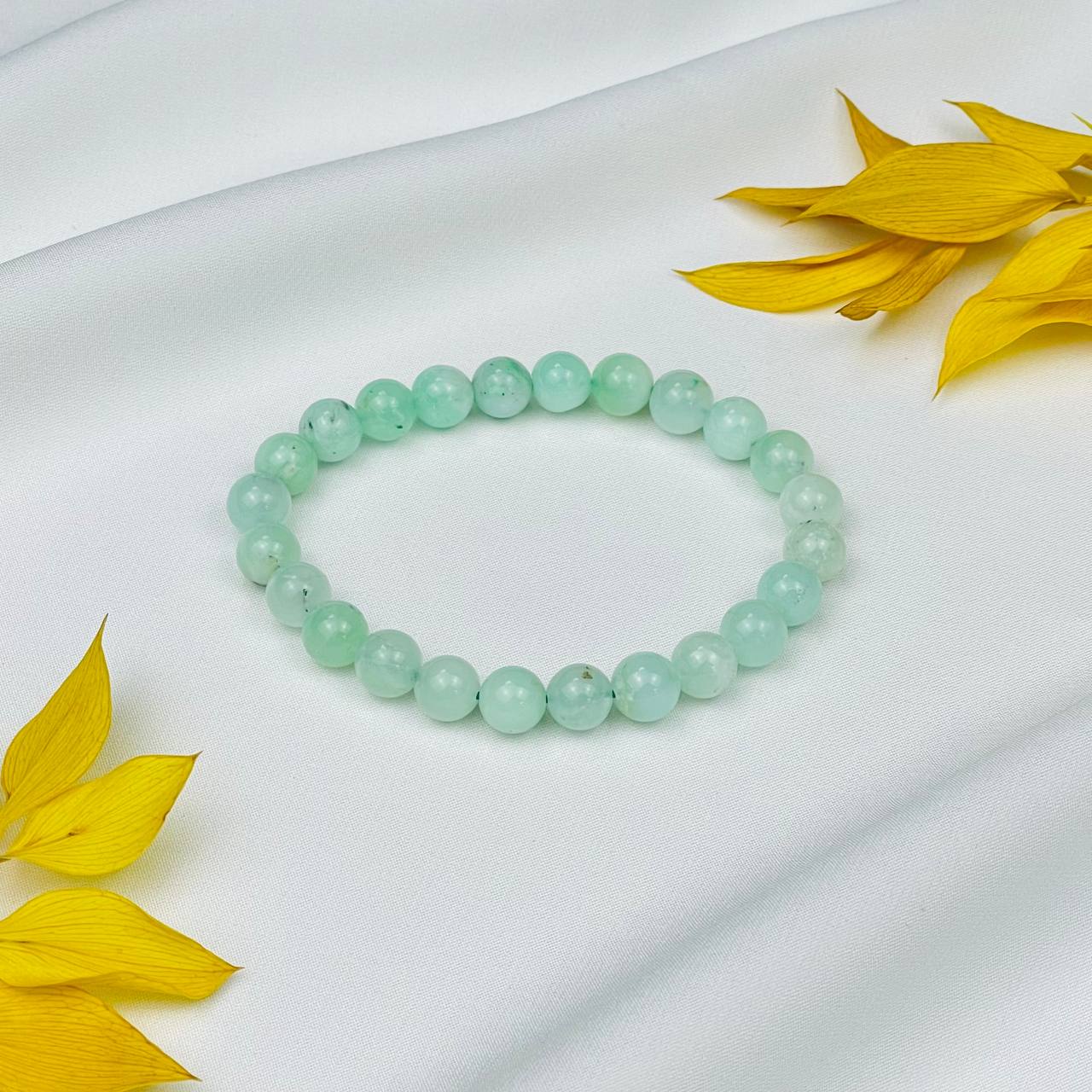 Цвет камня: Зелёный Месторождение..показать: Австралия Камень: Хризопраз Диаметр: 7,5-8 мм Поверхность: Гладкий Производитель: Радуга Самоцветов (Россия) Тип замка: Резинка: Австралия