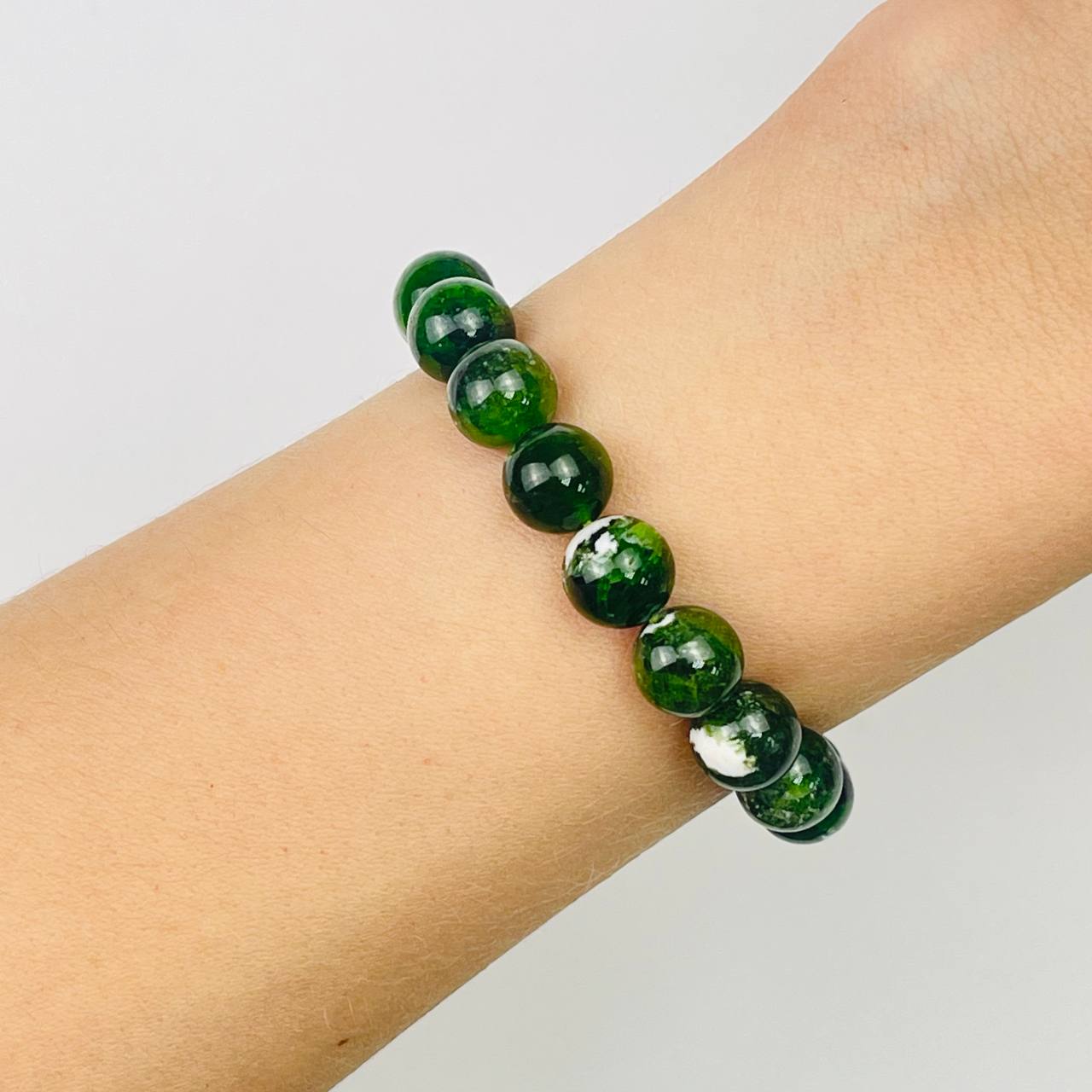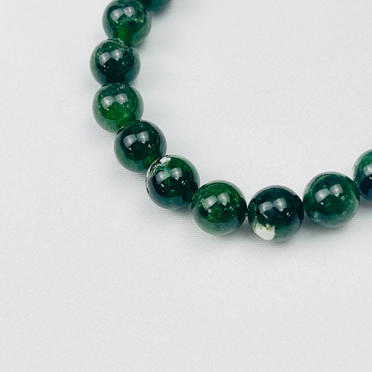 Цвет камня: Зелёный Месторождение..показать: Россия Камень: Хромдиопсид Диаметр: 9-9,5 мм Поверхность: Гладкий Производитель: Радуга Самоцветов (Россия): Россия