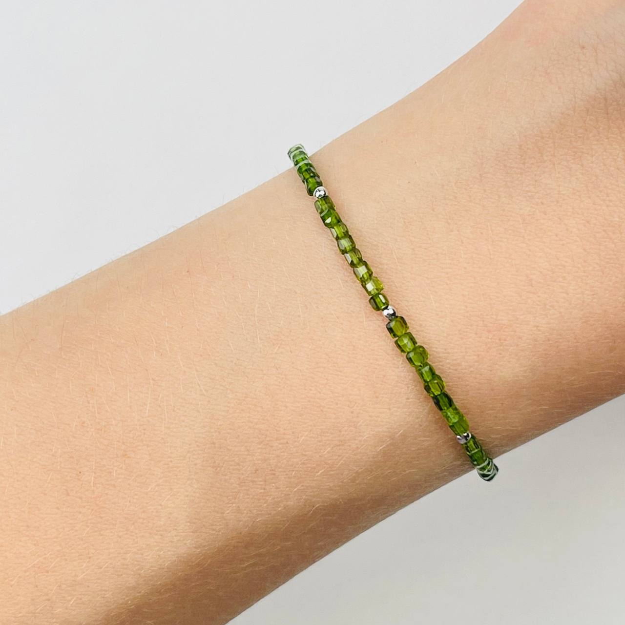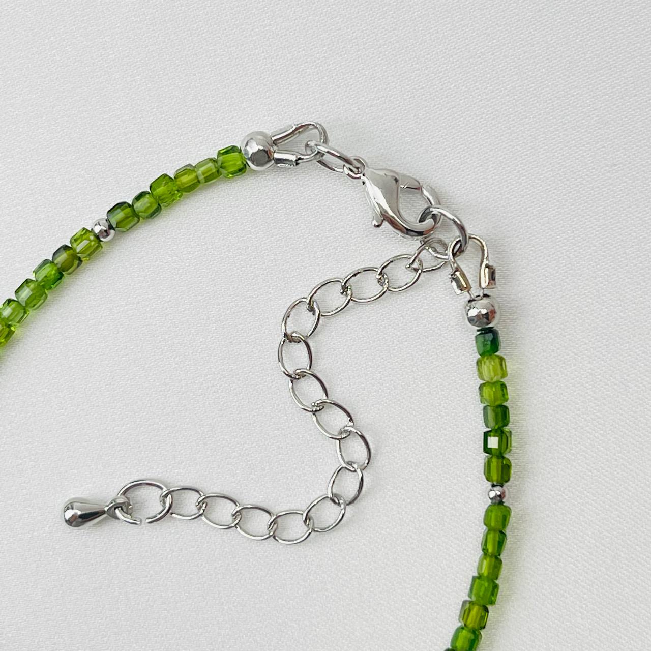 Тип замка: Карабин с цепочкой Цве..показатьт камня: Зелёный Месторождение: Россия Камень: Хромдиопсид Покрытие: Бижутерный сплав Поверхность: Граненый Размер: 2х2 мм Производитель: Радуга Самоцветов (Россия)т камня: Зелёный