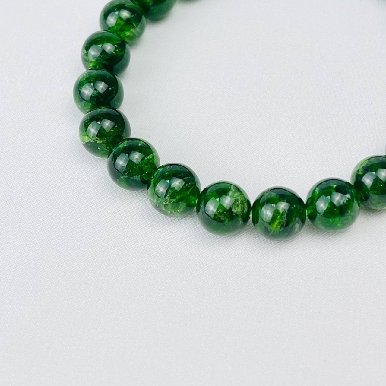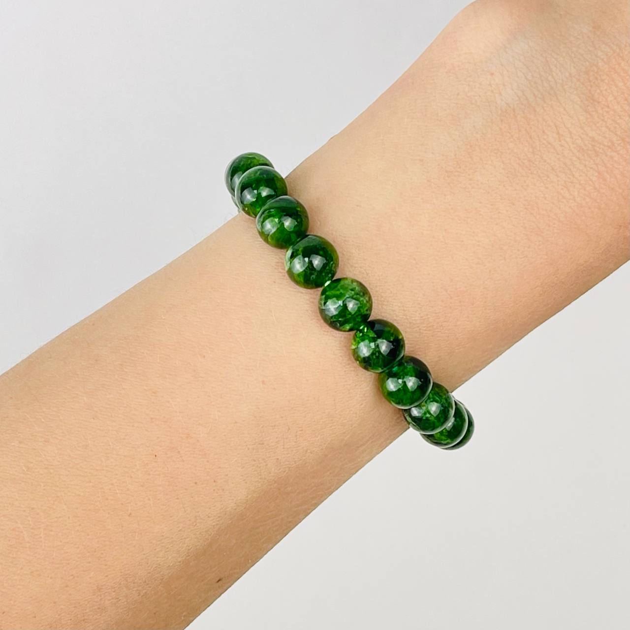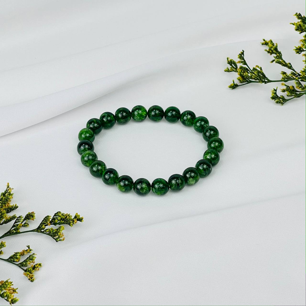 Цвет камня: Зелёный Месторождение..показать: Россия Камень: Хромдиопсид Диаметр: 8,5-9 мм Поверхность: Гладкий Производитель: Радуга Самоцветов (Россия) Тип замка: Резинка: Россия