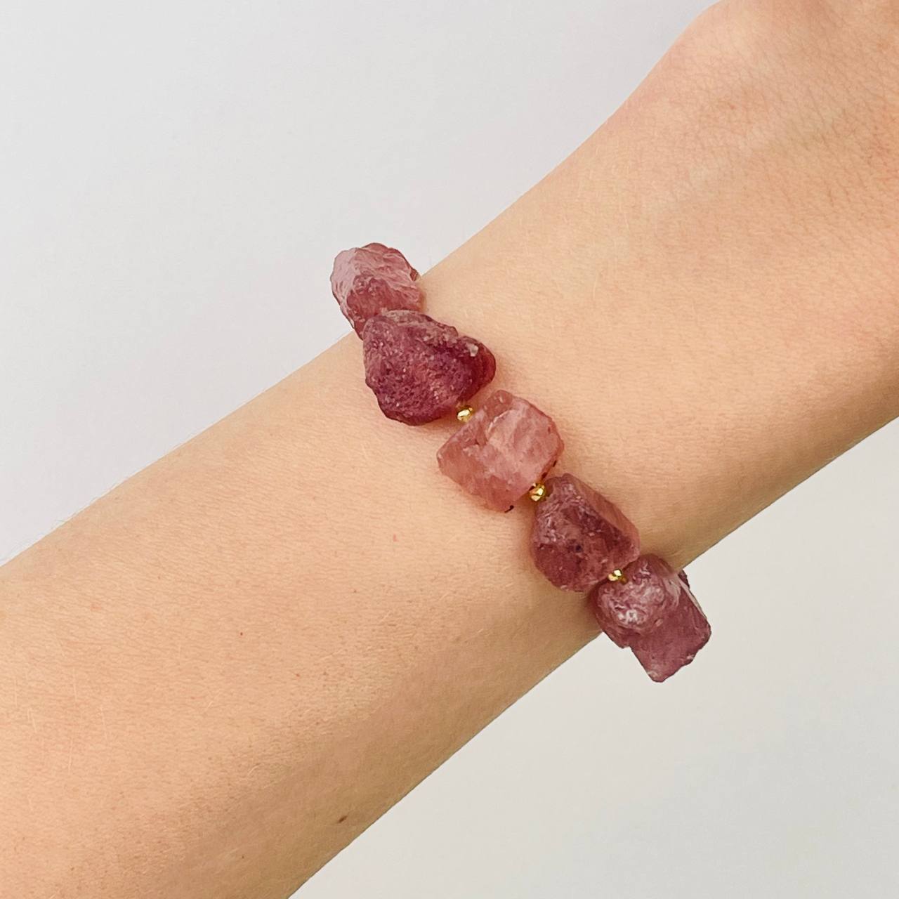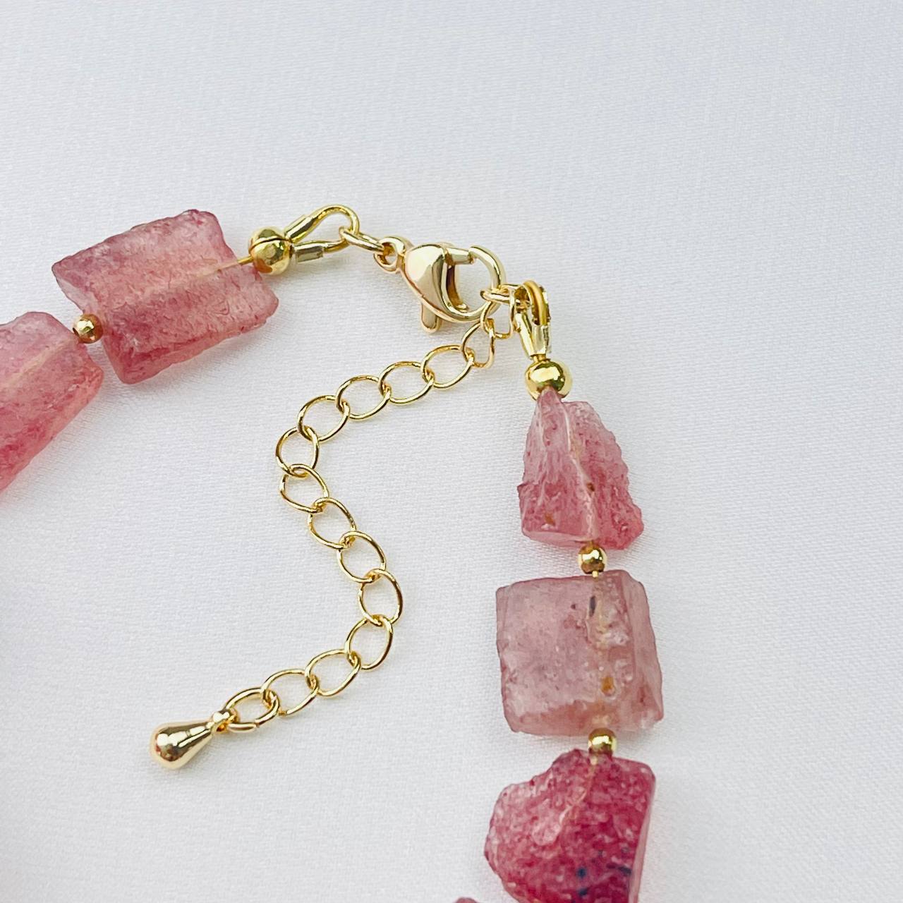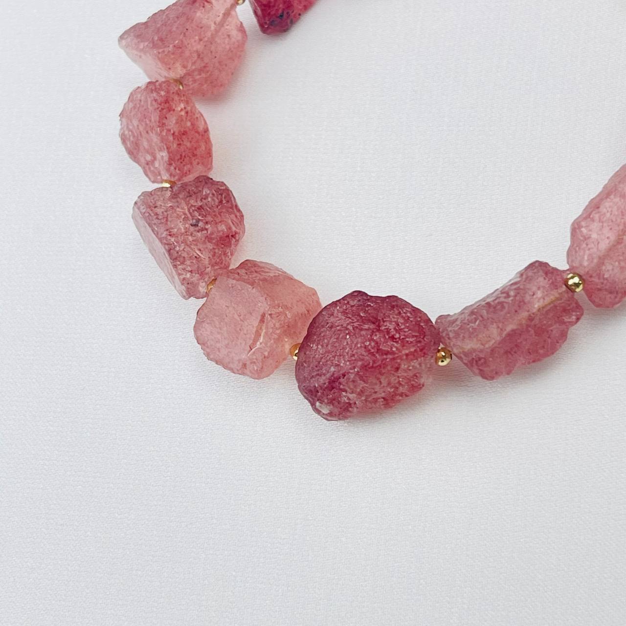 Цвет камня: Розовый Месторождение..показать: Бразилия Камень: Клубничный кварц Покрытие: Золото 14К Диаметр: 9-12 мм Поверхность: Необработанный Производитель: Радуга Самоцветов (Россия) Тип замка: Карабин с цепочкой: Бразилия