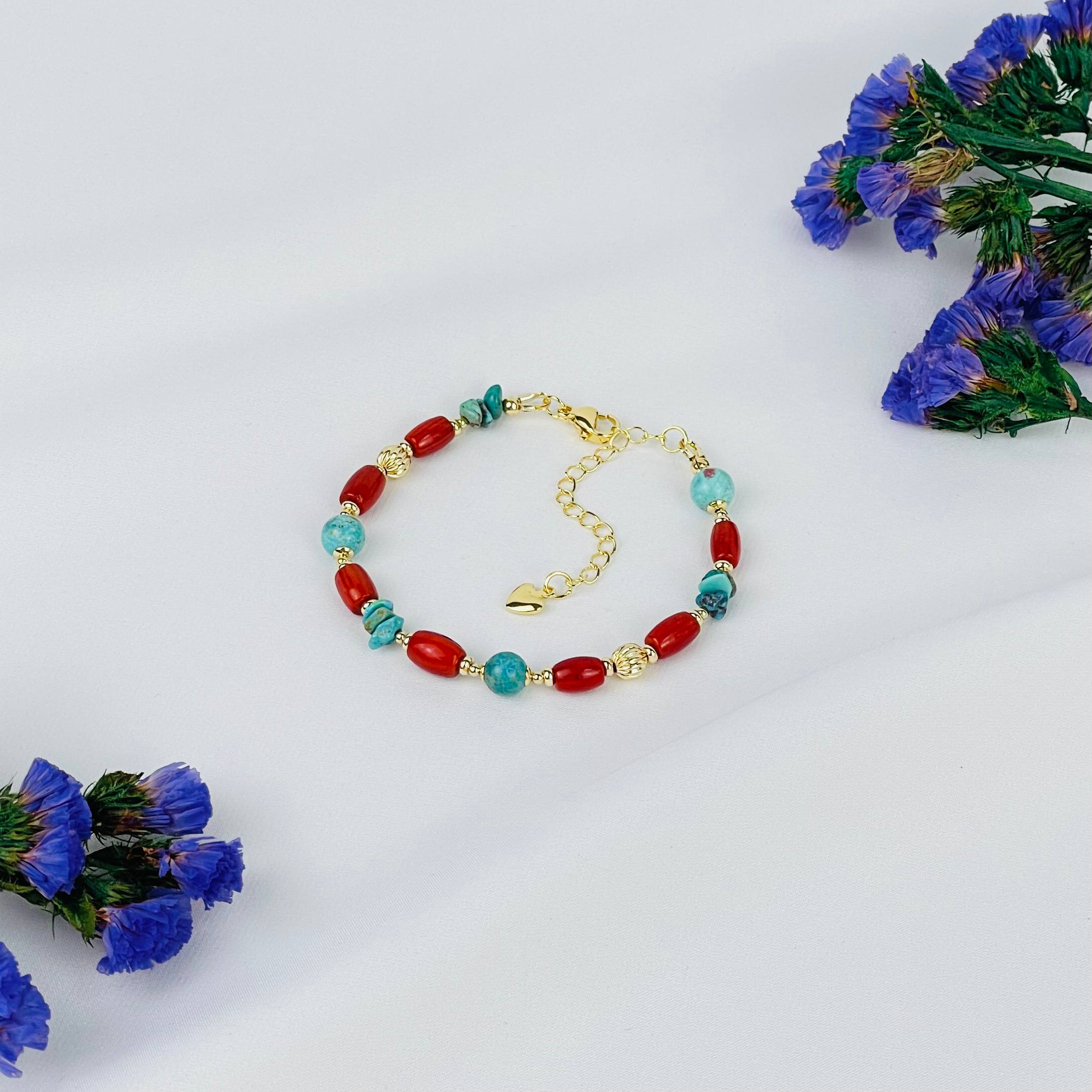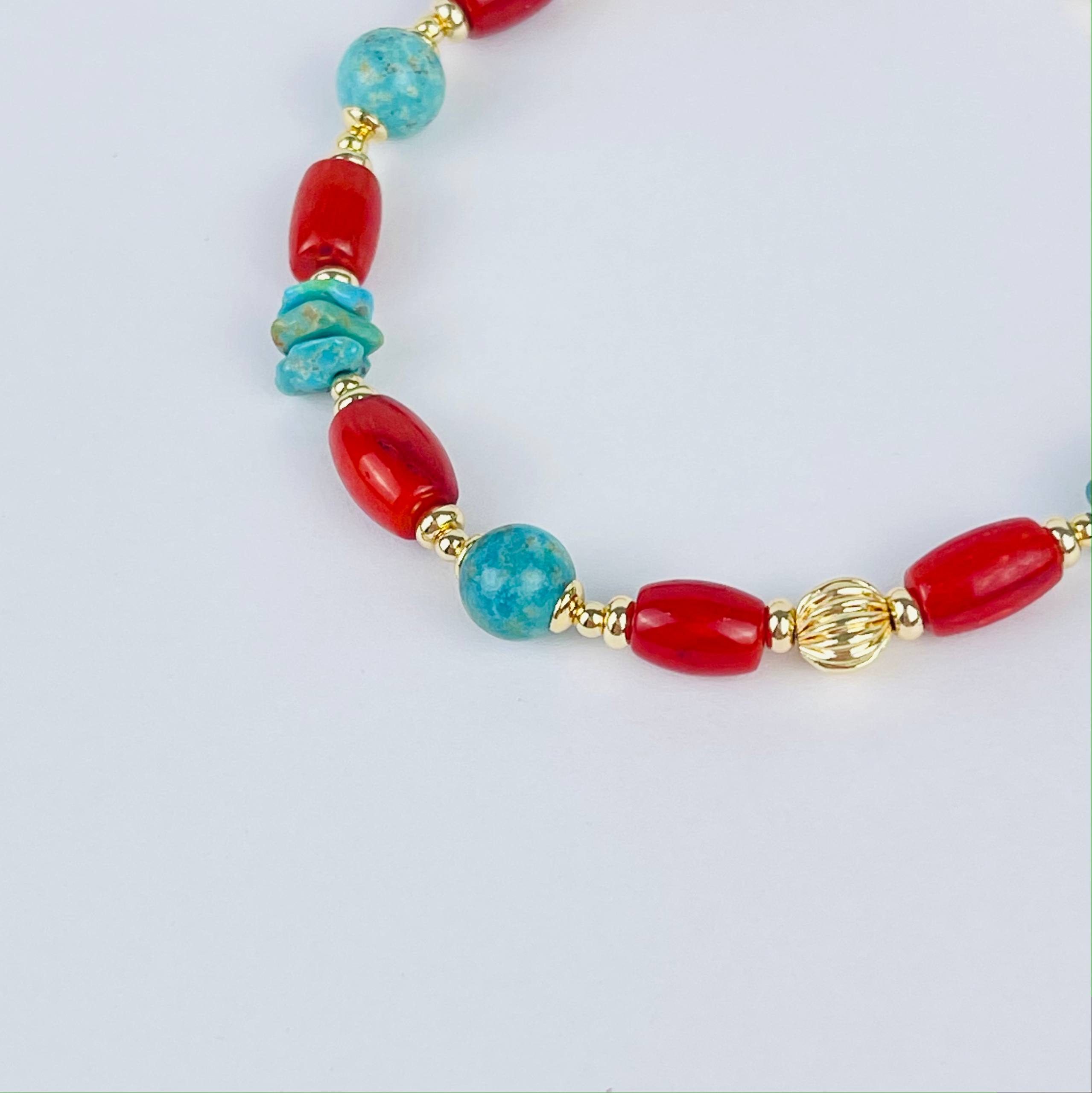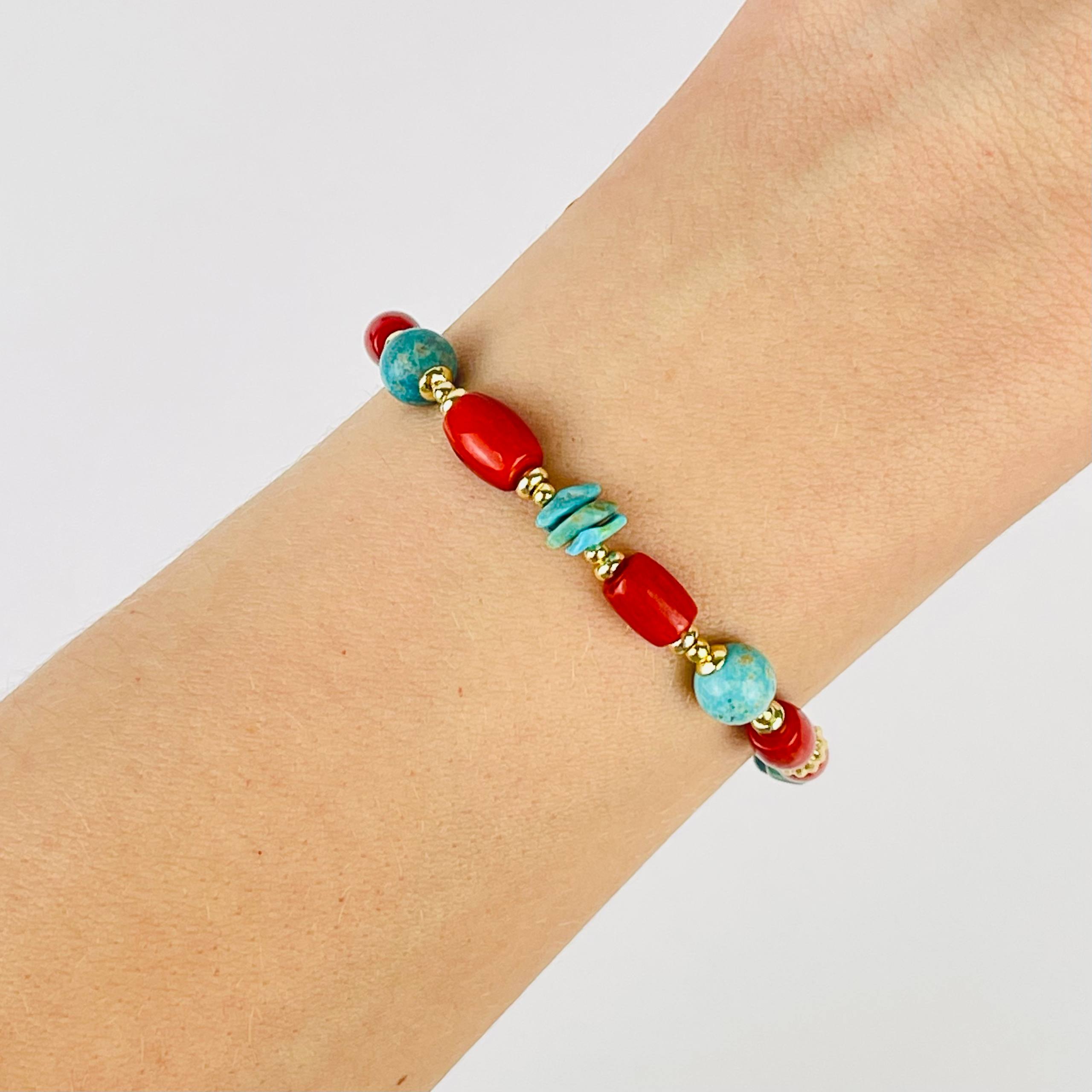 Радуга Самоцветов Браслет из Коралла и Бирюзы