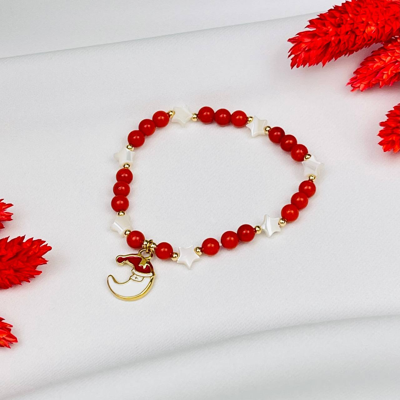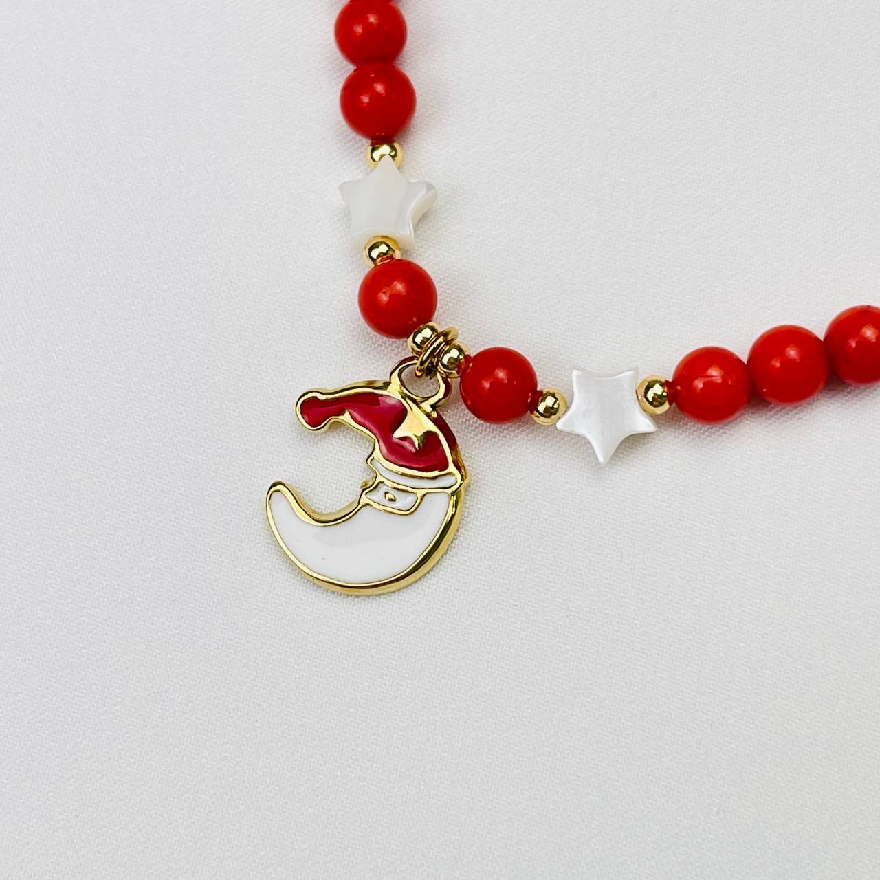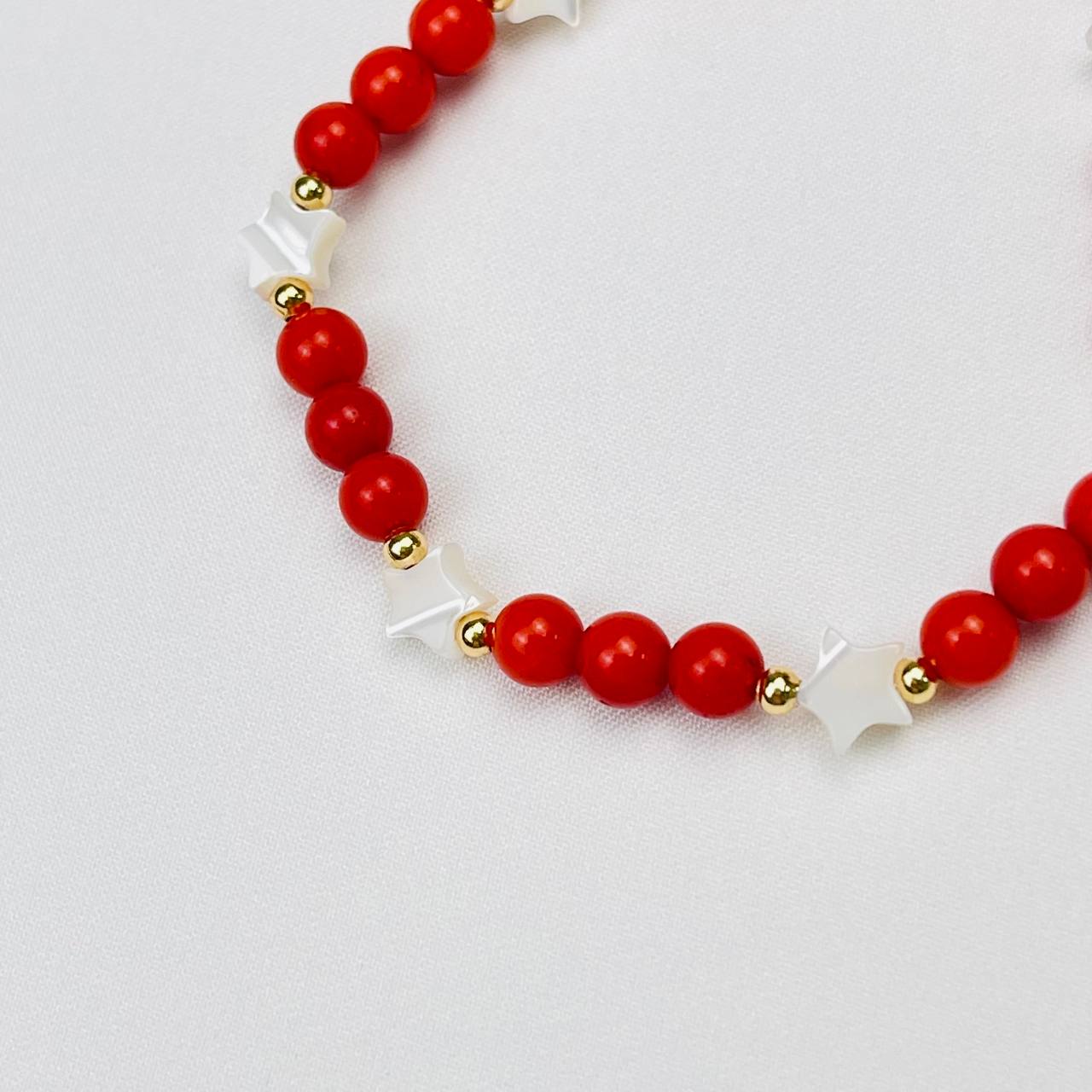 Радуга Самоцветов Браслет из Коралла и Перламутра с подвеской "Месяц"