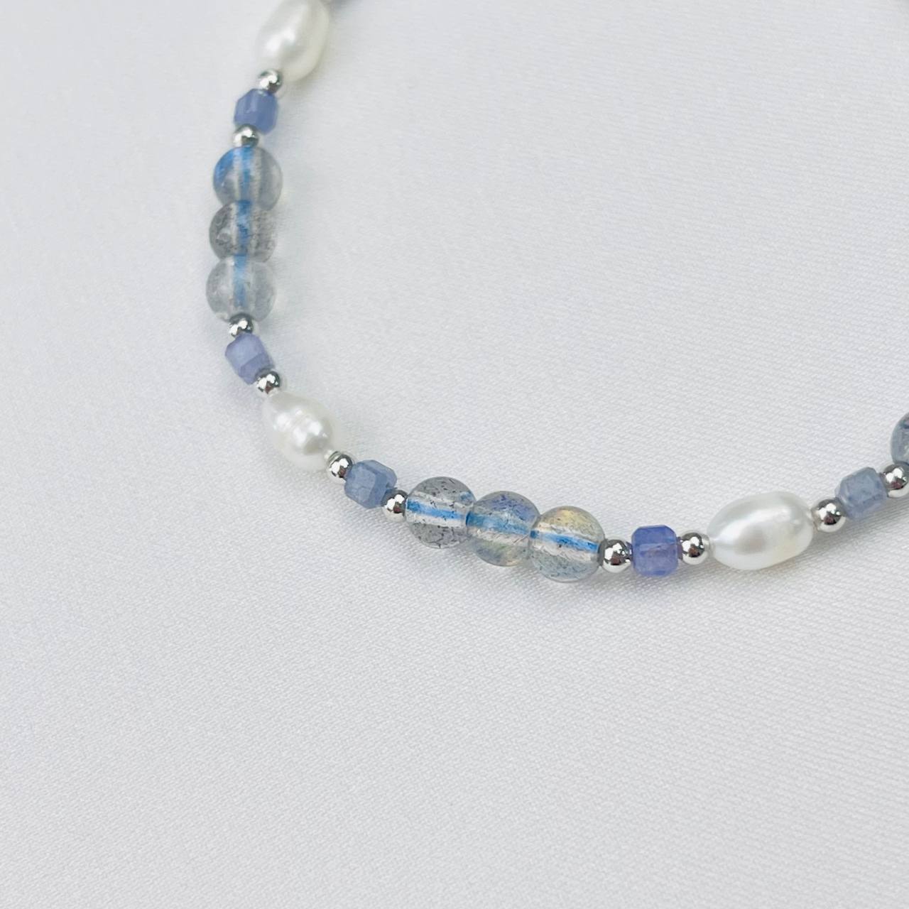 Радуга Самоцветов Браслет из Лабрадора, Танзанита и Жемчуга