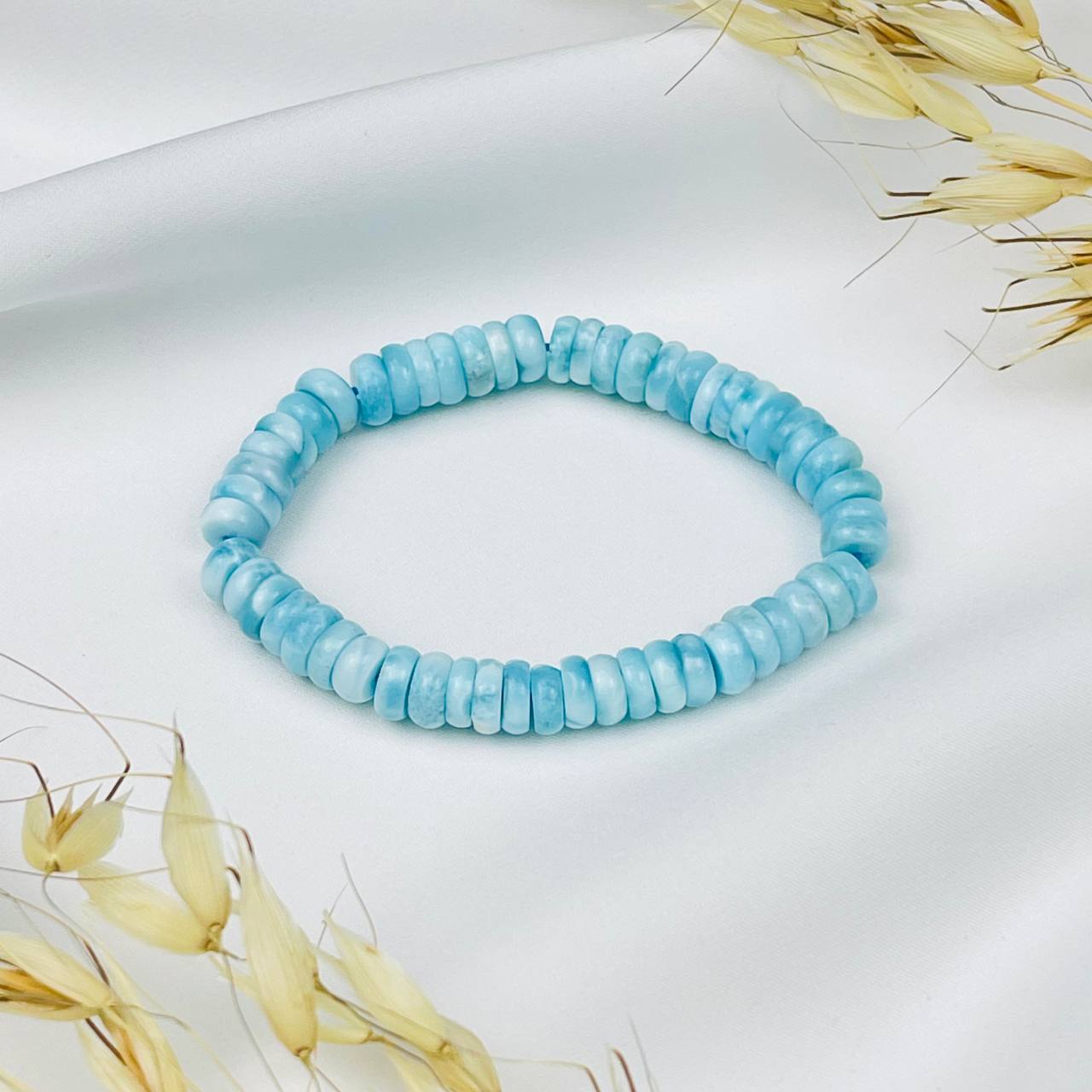 Цвет камня: Голубой Месторождение..показать: Доминиканская Республика Камень: Ларимар Поверхность: Гладкий Размер: 4х8 мм Производитель: Радуга Самоцветов (Россия) Тип замка: Резинка: Доминиканская Республика