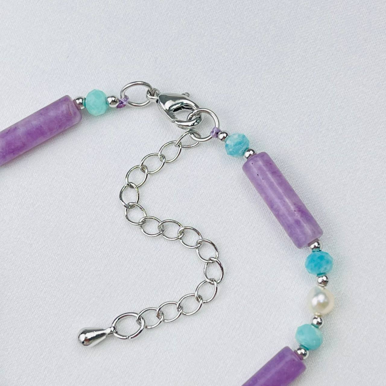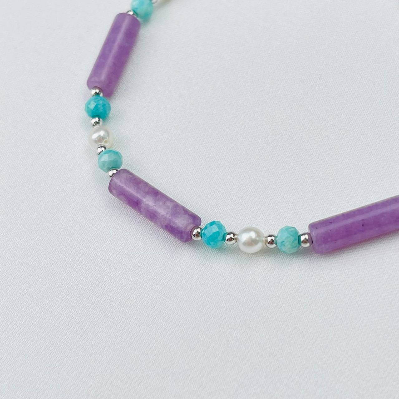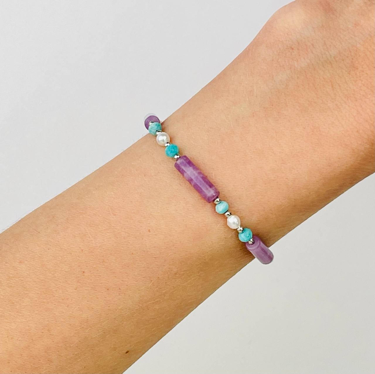 Радуга Самоцветов Браслет из Лепидолита, Амазонита и Жемчуга