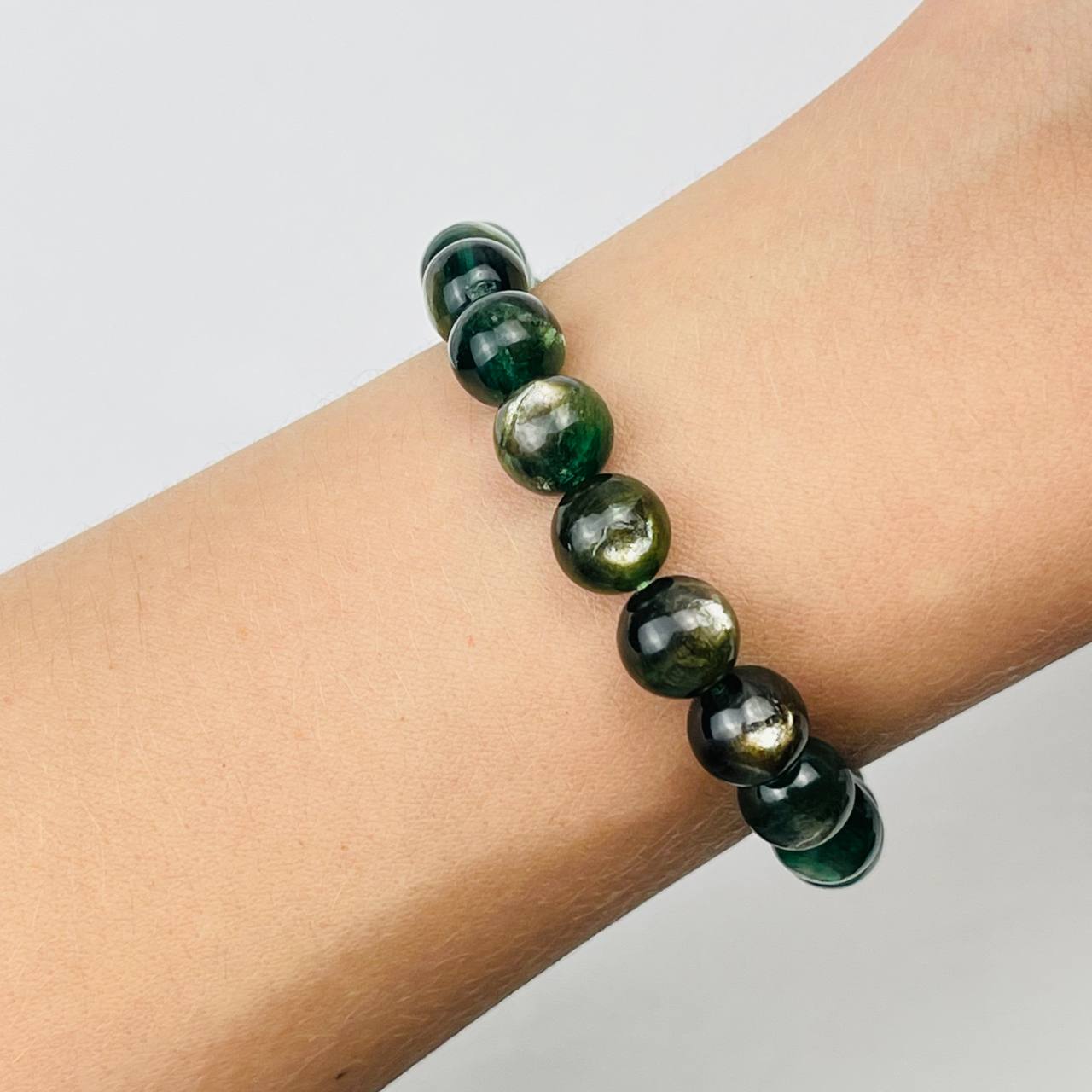 Цвет камня: Зелёный Месторождение..показать: Мадагаскар Камень: Лепидолит Диаметр: 9,5-10 мм Поверхность: Гладкий Производитель: Радуга Самоцветов (Россия) Тип замка: Резинка: Мадагаскар