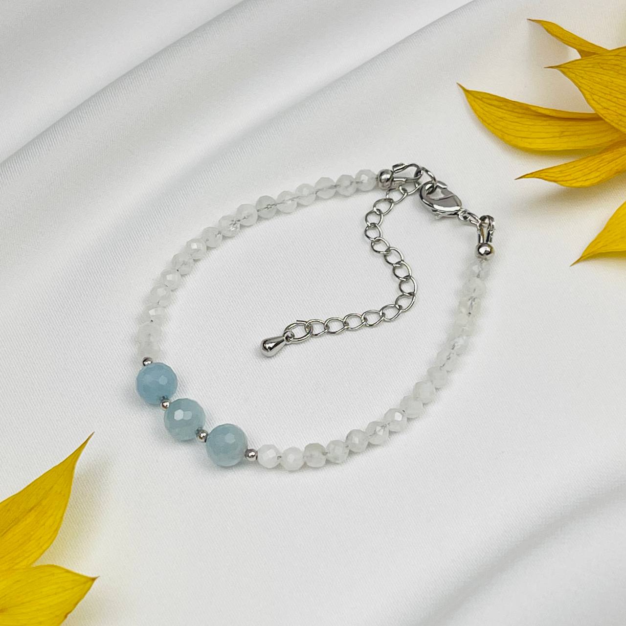 Радуга Самоцветов Браслет из Лунного камня и Аквамарина