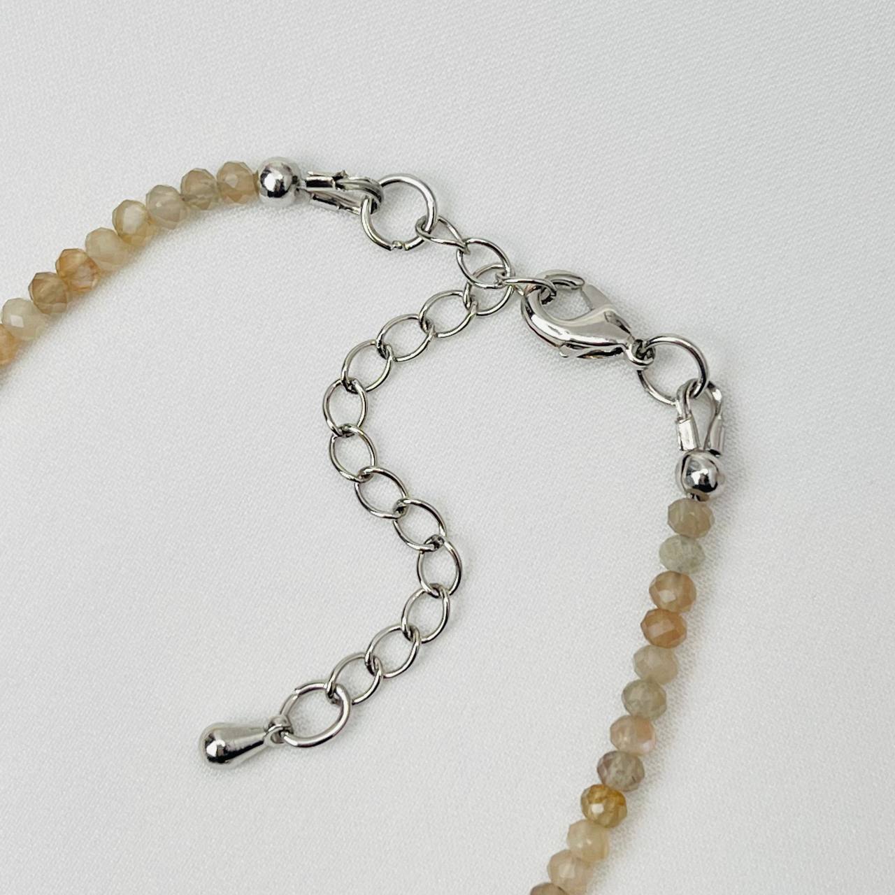 Цвет камня: Миксовый Месторождени..показатье: Индия Камень: Лунный камень Вставка: Бирюза Покрытие: Бижутерный сплав Поверхность: Граненый Размер: 2х3/4х4 мм Производитель: Радуга Самоцветов (Россия) Тип замка: Карабин с цепочкойе: Индия