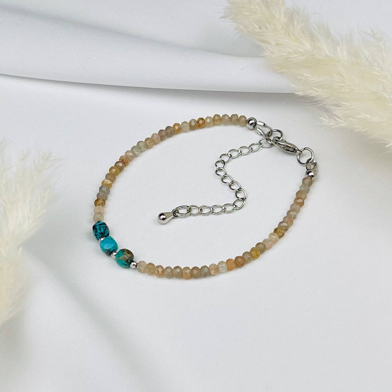 Радуга Самоцветов Браслет из Лунного камня и Бирюзы