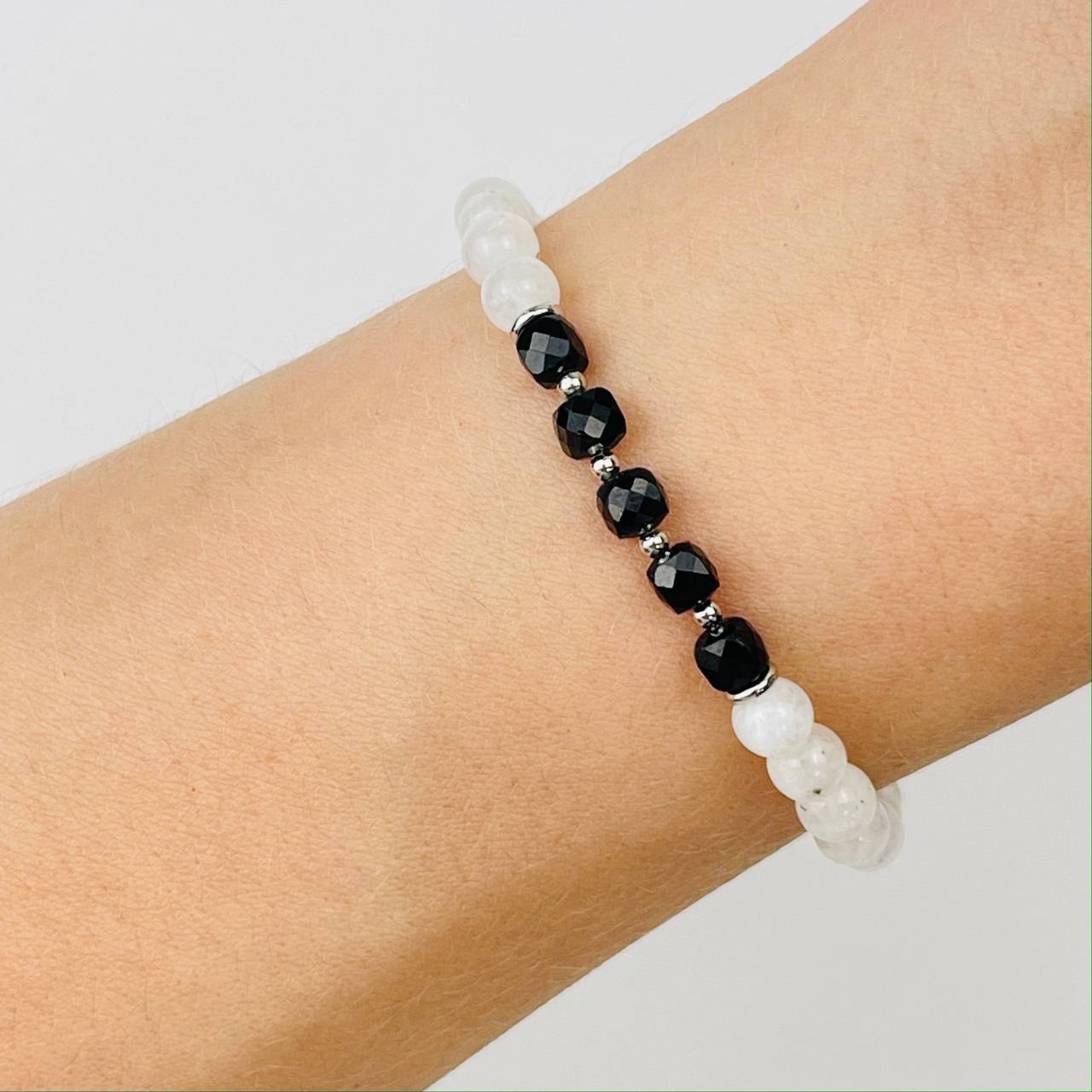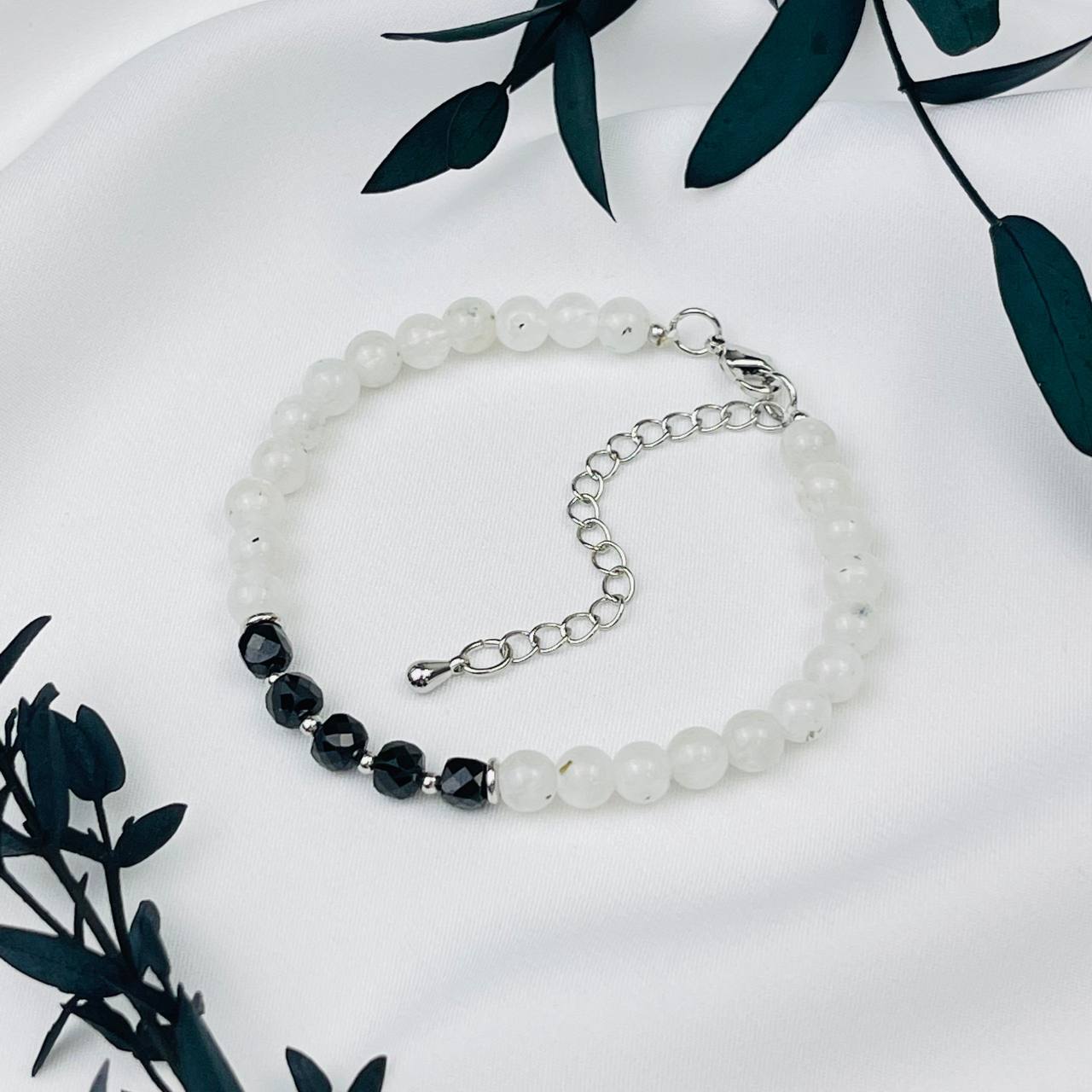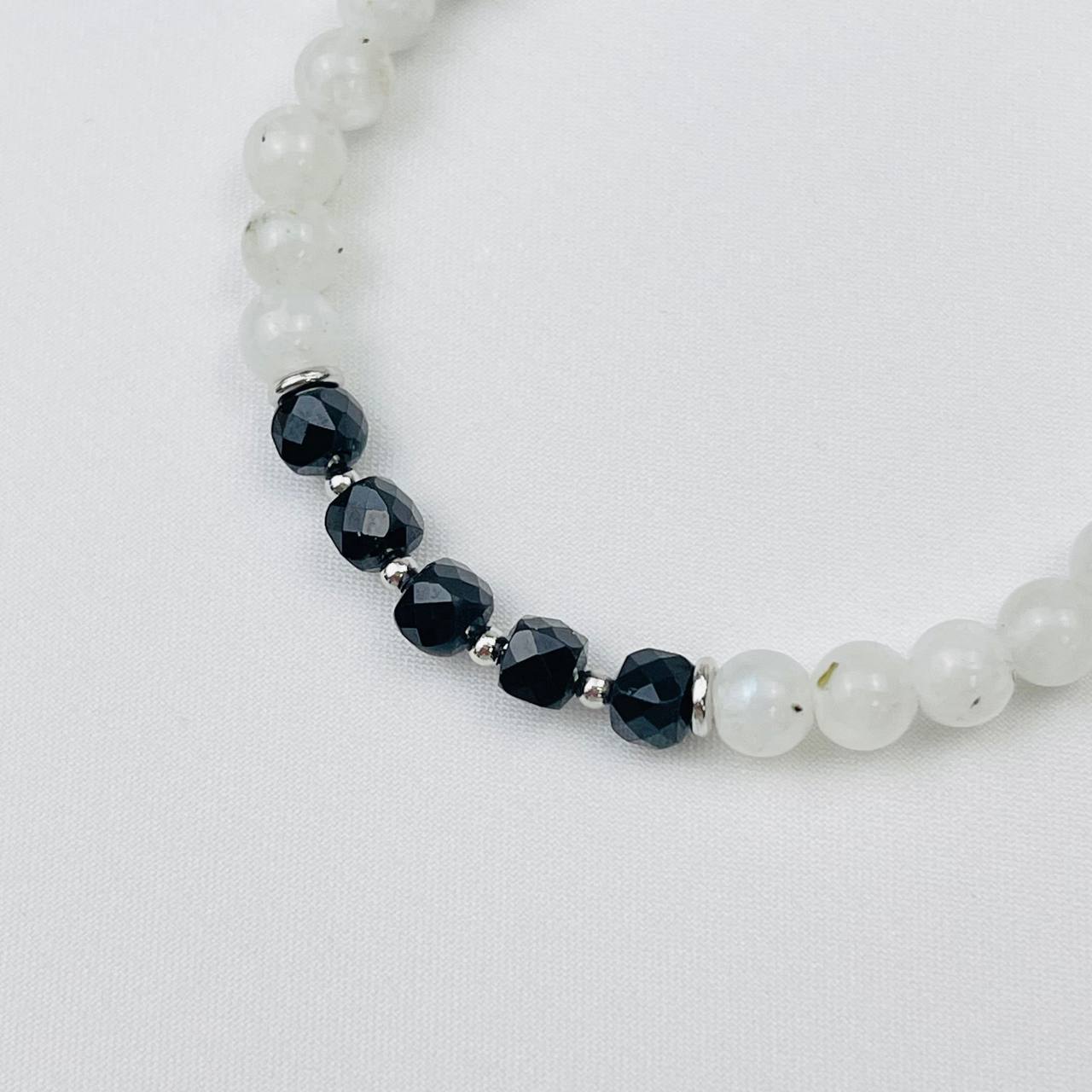 Радуга Самоцветов Браслет из Лунного камня и черной Шпинели