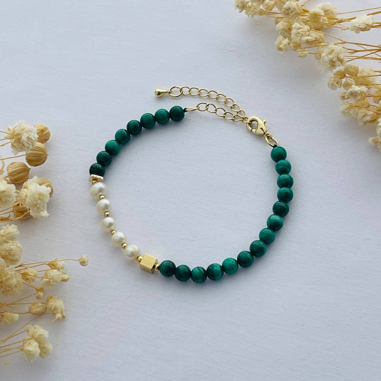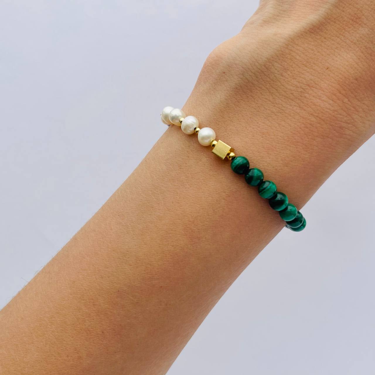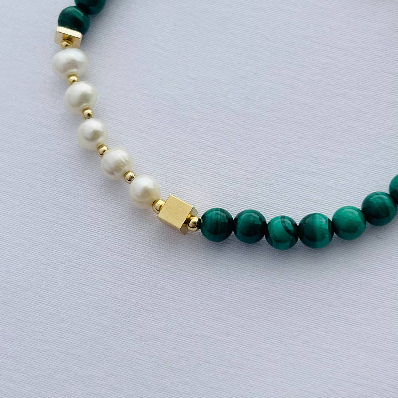 Радуга Самоцветов Браслет из Малахита и Жемчуга