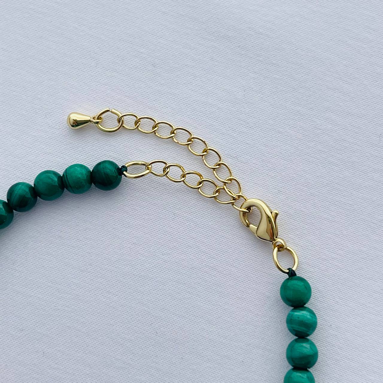 Цвет камня: Миксовый Месторождени..показатье: Африка Камень: Малахит Вставка: Жемчуг Покрытие: Золото 14К Диаметр: 4-5 мм Поверхность: Гладкий Производитель: Радуга Самоцветов (Россия) Тип замка: Карабин с цепочкойе: Африка